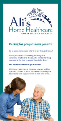 | Alis Home Healthcare, is a privately owned and operated business based in Canterbury. We specialise in providing personalised private care and home support services. Whether you require minimal assistance with just one hour per visit or comprehensive 24-hour care, we will match a carer to you. At Alis Home Healthcare, we understand that every individual has unique needs. That's why our services are fully customisable to meet your specific requirements or those of your loved ones. Whether it is long term or respite care you are after we can help. Our Canterburywide service gives you peace of mind even when you can't be there in person. We offer experienced Support Workers who can provide attentive care, or if your needs require medical expertise, we can arrange for a Registered Nurse to support you within the comfort of your own home. We pride ourselves on the successes of our Life Opportunities team. Our wide range of support services can be tailored to suit your needs, allowing you to choose the combination that works best for you: • Personal Care • Meal Preparation • Shopping • Community Access and Participation • Sleepovers • Wakeovers • Complex Care • Palliative Care • Wound Care • Catheter Care • Medication Oversight • Assistance with Achieving Independence • Support and Care during Convalescence • General Nursing Care as Required |