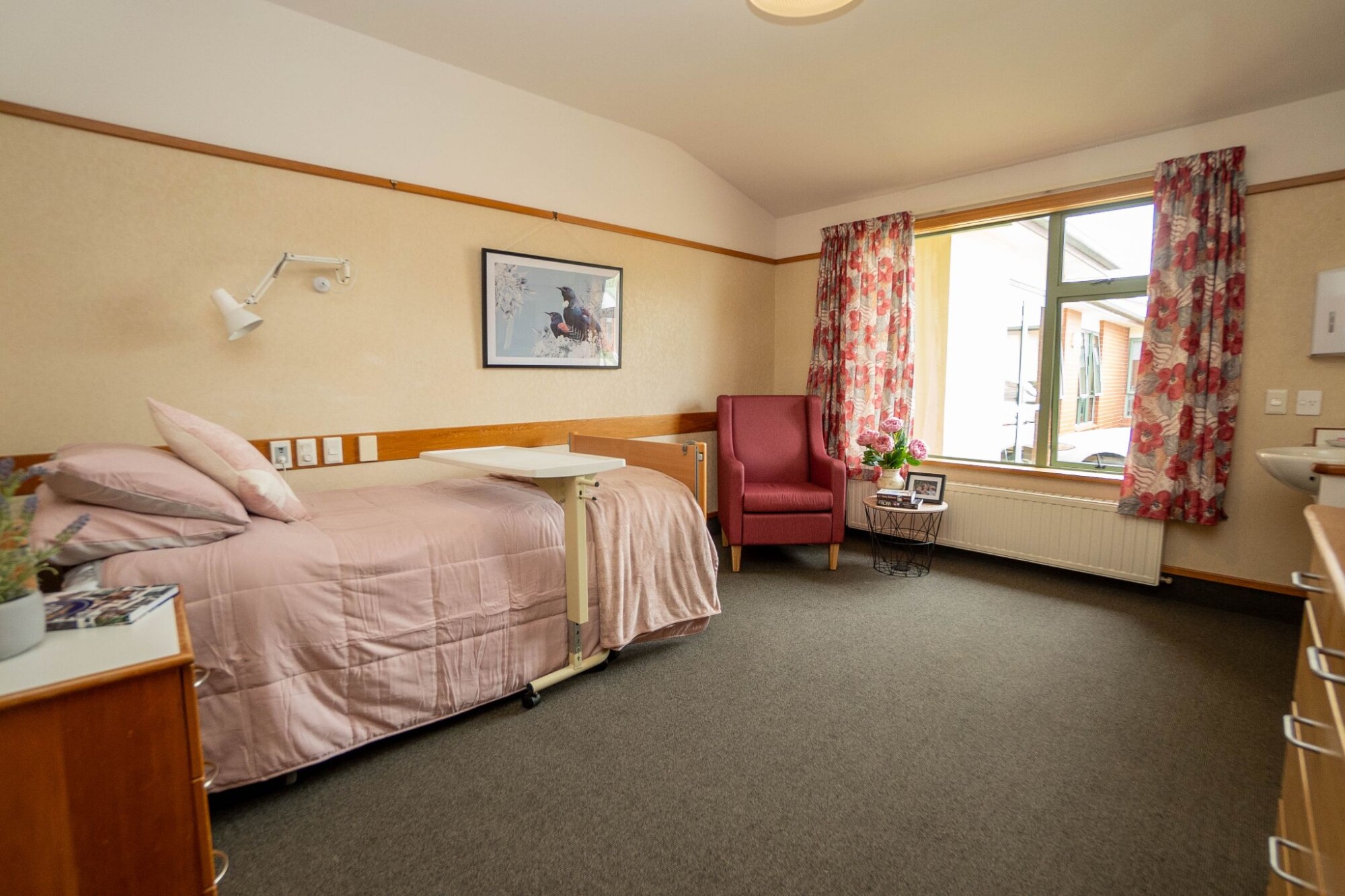 Our private rooms are spacious with pleasant outlooks over gardens, courtyards and green spaces. Personalised touches create a relaxing private room. There are call bells in your room and bathroom, and all our nurses and care staff carry a pager that alerts them when a call bell is rung.