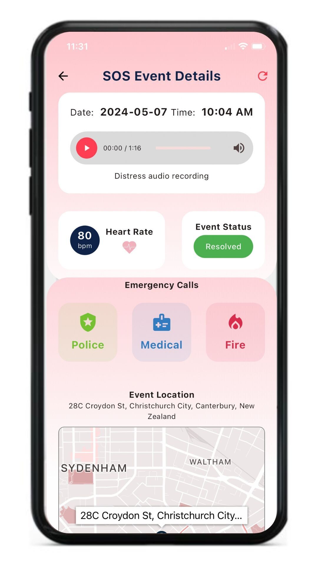 HaloGuard is your personal safety lifeline in any situation – alert your trusted guardians instantly, share your live location, and stream real time audio so help arrives fast and informed.