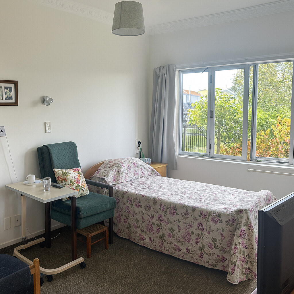 Your room is your own to place those items special to you. each room fits a set of drawers, chair, bedside table, The bed is provided. The cost of a standard room is included in the Care Services Fee set by the DHB. Premium rooms have additional features such as more space, an ensuite bathroom or outdoor access, but you’ll need to pay an extra amount per day to cover the cost of these premium features.