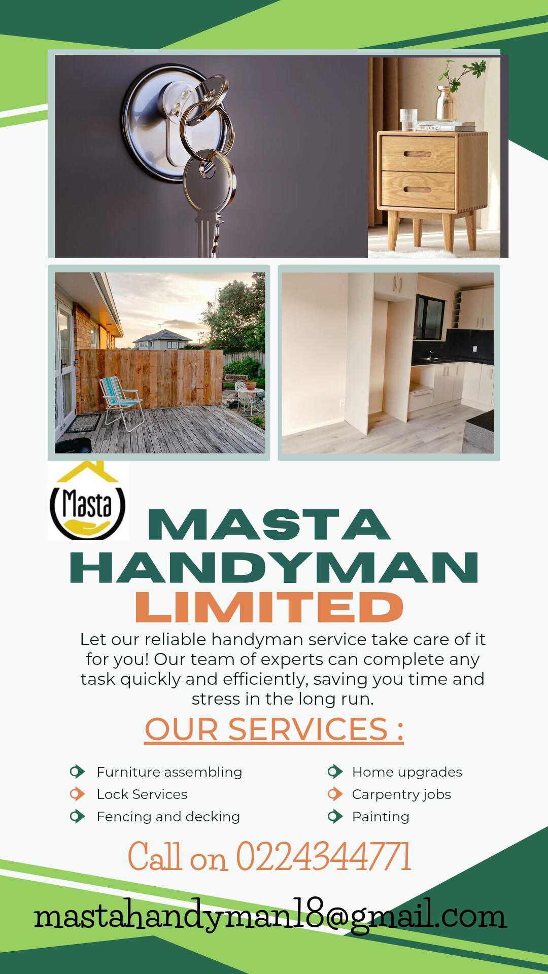 | I called Selvin yesterday afternoon and informed him about my broken door handle, He replied very quickly, sent a quote, ordered the parts needed for the job and arrived 2 hours after our call. He was kind and respectful, capable and fast. I'm incredibly thankful and wouldn't hesitate to recommend Masta Handyman, great service J Yourz I couldn’t be happier with the work done on my home. From start to finish, the team was punctual, respectful, and incredibly skilled. They took the time to understand what I wanted, offered helpful suggestions, and delivered results that exceeded my expectations. Every detail was handled with care, and the final outcome truly transformed the space. It's clear they take great pride in their work, and it shows. I highly recommend them to anyone looking for reliable, high-quality home improvement. Will definitely be calling them again for future projects! Alisha Ayub We had Selvin come and do few maintenance works at my property. I would definitely recommend him to other customers. He has team with good knowledge and professional works with amazing pricing. We have stress free communication with selvin and team while they handled our projects. Rohit Reedy Thank you so much Selvin, appreciate your service. Great communication and quick response, happy with the outcome of wall and door. Frances Nooroa I had my bathroom sliding door fixed and the lock adjusted by Masta Handyman Ltd, I'm also very impressed with their work. Everything was done professionally and with great attention to detail. The door works perfectly now. Highly recommended their service! Doreen Maharaj |