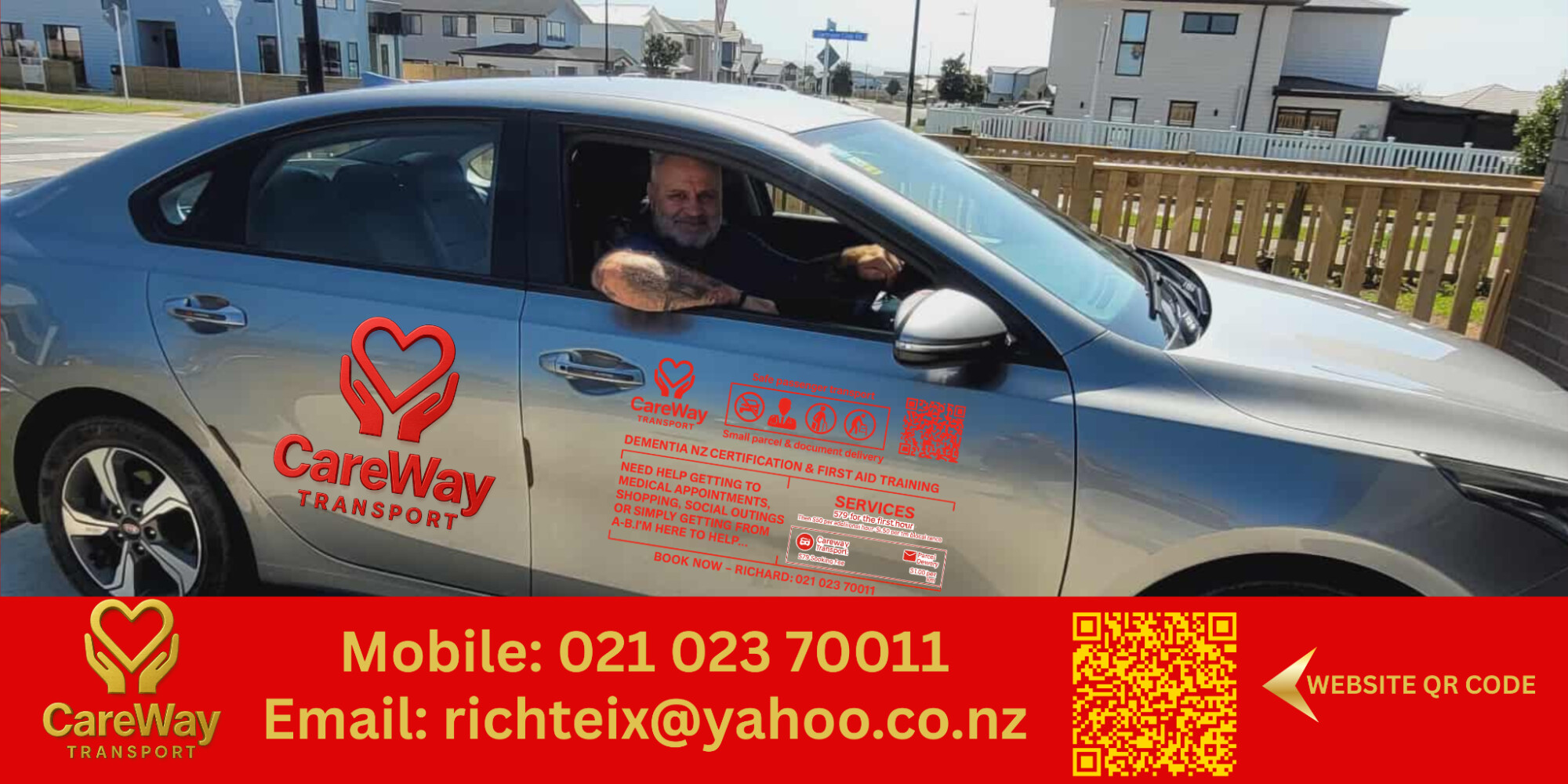 | CareWay Transport provides safe, compassionate, and personalised door-to-door transport for older adults across Auckland. Whether it’s a medical appointment, family visit, social outing, or after-hours trip, CareWay ensures every journey is comfortable and stress-free. With Dementia NZ certification, NZQA Health and Disability qualifications, and First Aid training, clients receive professional care and reliable assistance from the same trusted driver each time — promoting dignity, independence, and peace of mind for both residents and their families. |