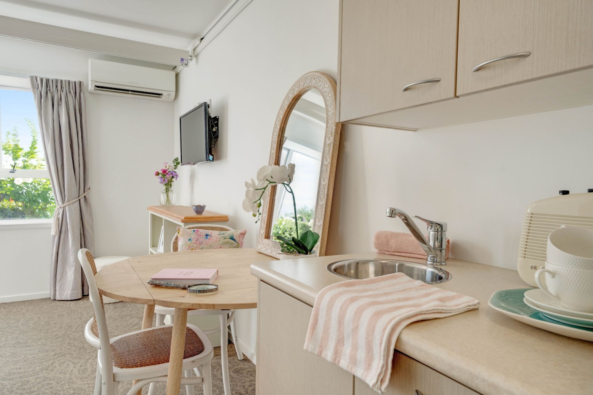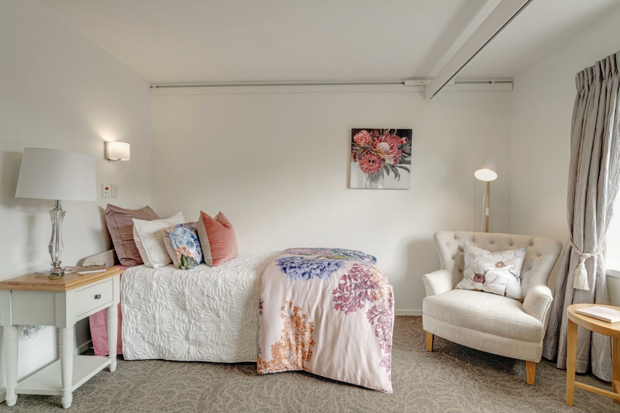 Our Care Suites offer space, flexibility and extra features. Suitable for either Rest Home or Hospital care, you don’t have to move if your needs change between these levels. All Care Suites come complete with a heat pump and full en-suite bathroom, as well as a kitchenette with a fridge and a kettle – perfect for making a cuppa when friends and family come to visit. You own the right to occupy your Care Suite, so you can personalise it with your favourite furniture and treasured pieces. A Health New Zealand – Te Whatu Ora assessment is not required for care that is paid for privately.