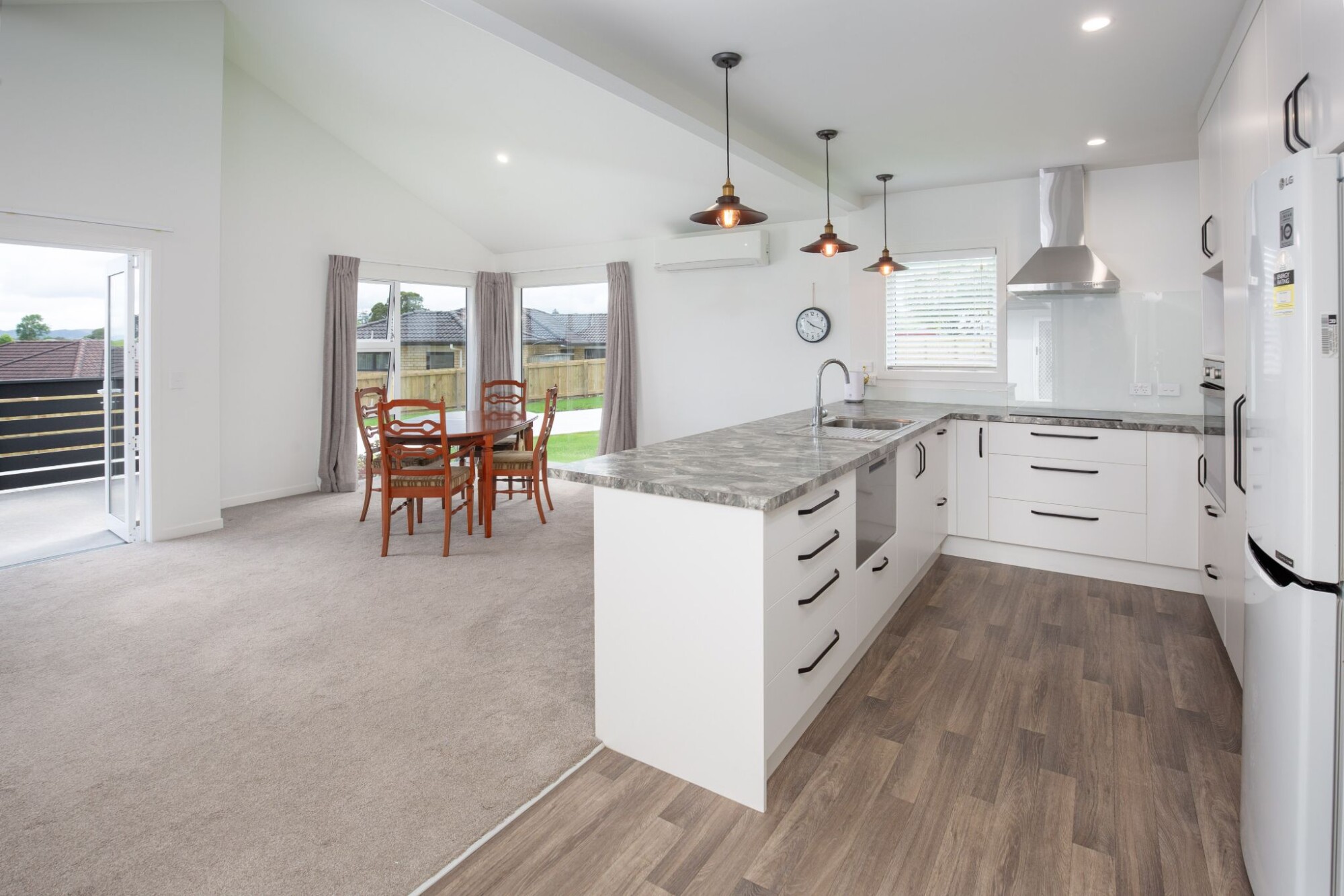 Northfacing with tinted windows, the living area is inviting as you enter the home, with high ceilings and space for you to enjoy watching the clouds float by. With a private fenced patio off the lounge, you can enjoy the warm afternoon sun from your living space. The heatpump in the dining area keeps this area at your desired temperature, whilst double glazing throughout the home keeps the draughts at bay.