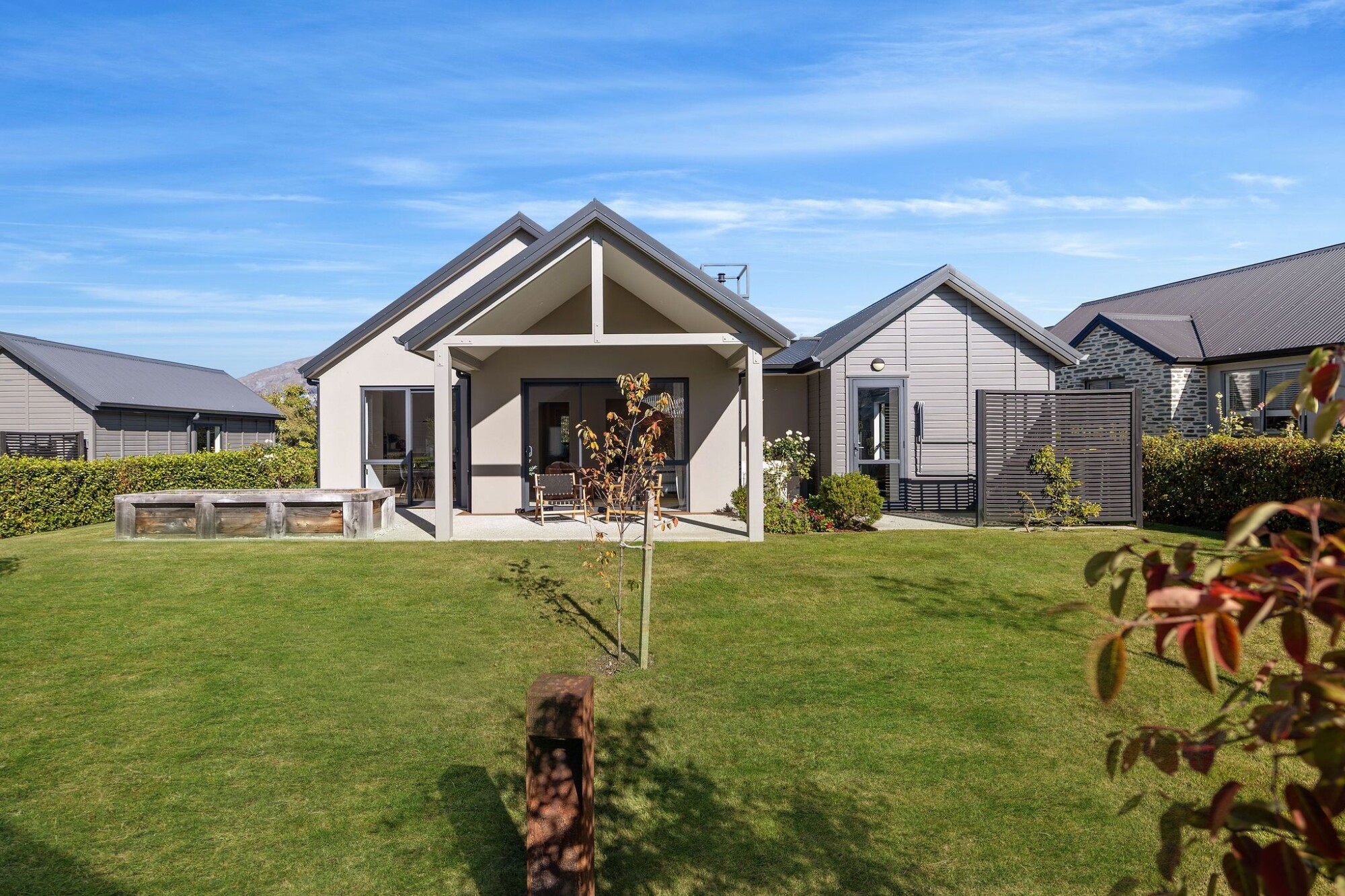 All residences at Arrowtown Lifestyle Village have been thoughtfully designed by specialised architects. The vast majority of villas are free-standing with ample outdoor living spaces, and all feature double glazing, insulation and covered patios to suit the local climate. Villa construction is nearing completion, with the townhouse precinct to commence construction in 2025.
