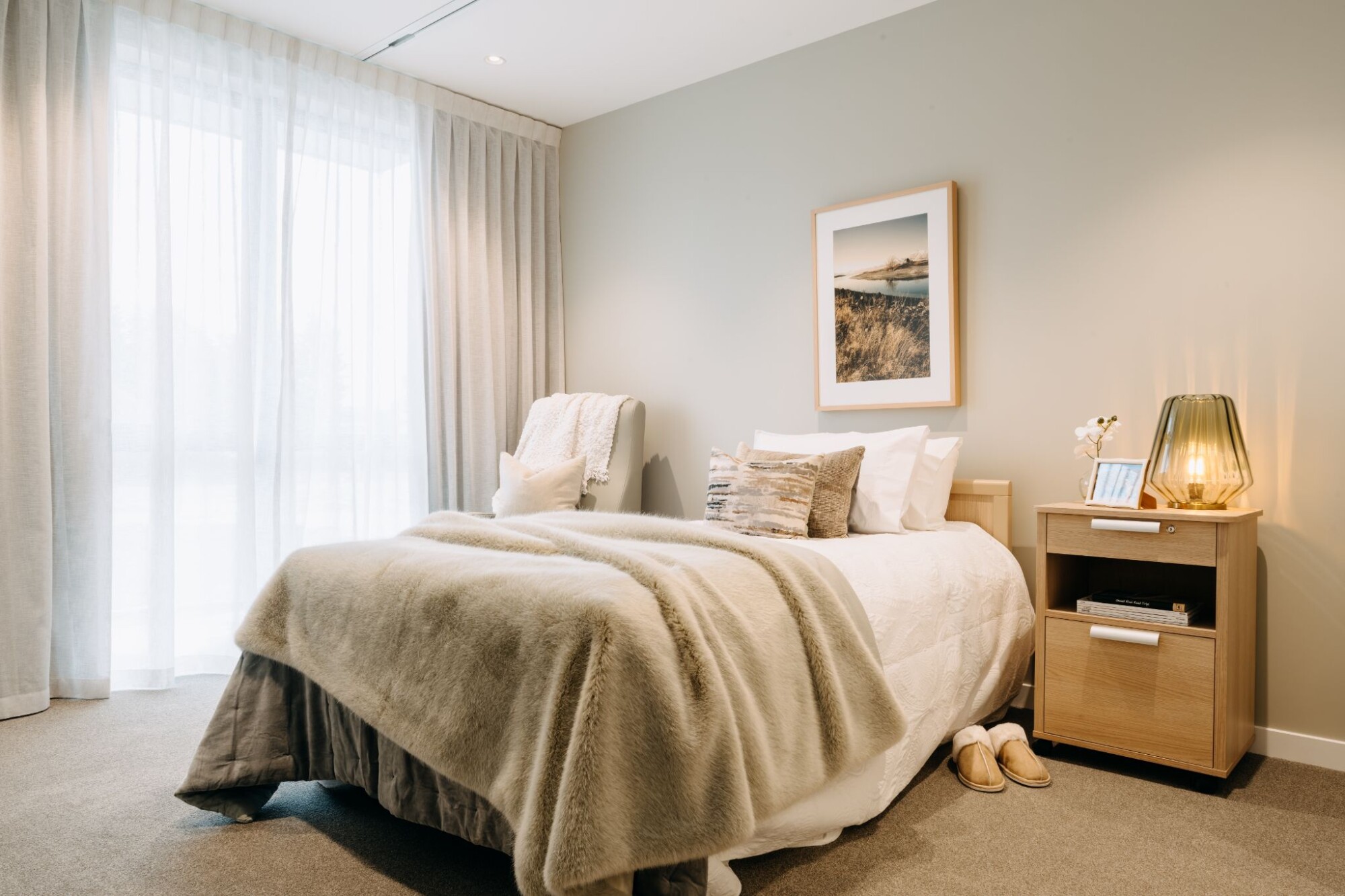Now open: Queenstown’s first Care Suites offering. A new alternative to care and support, these studio and one-bedroom suites are cleverly designed to support resident-led care within an elegant and comfortable environment. They offer significant advantages over traditional rest home rooms, including built-in (but hidden) medical fittings that allow hospital-level care when needed. All suites have an ensuite bathroom, built-in storage and emergency call system; all also have a kitchenette or kitchen. There are standard, premium, deluxe (fully furnished) and deluxe plus options available.