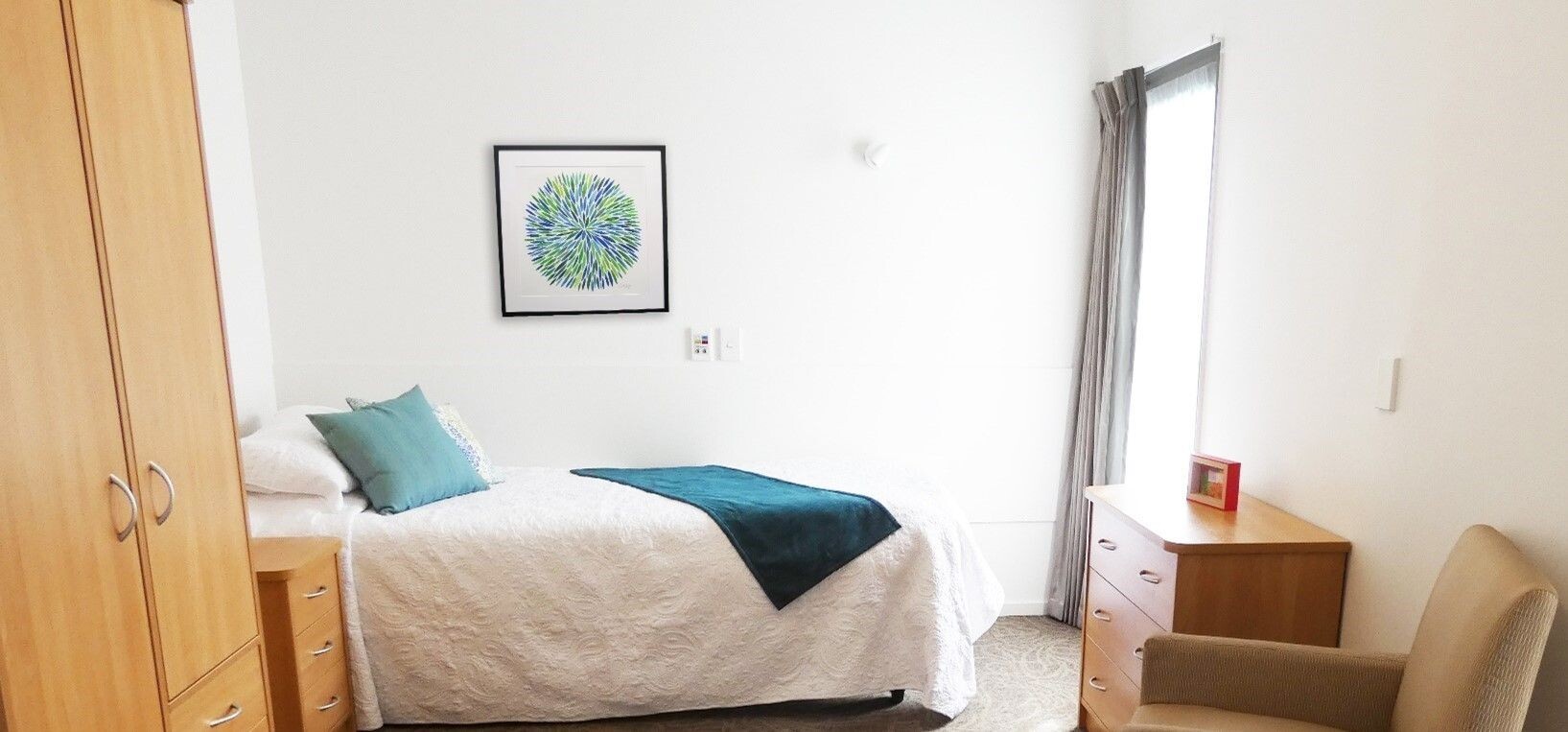 Standard rooms are large enough for a single bed, a chair and a wardrobe or chest of drawers. The cost of a standard room is included in the Care Services Fee set by the Health New Zealand – Te Whatu Ora.