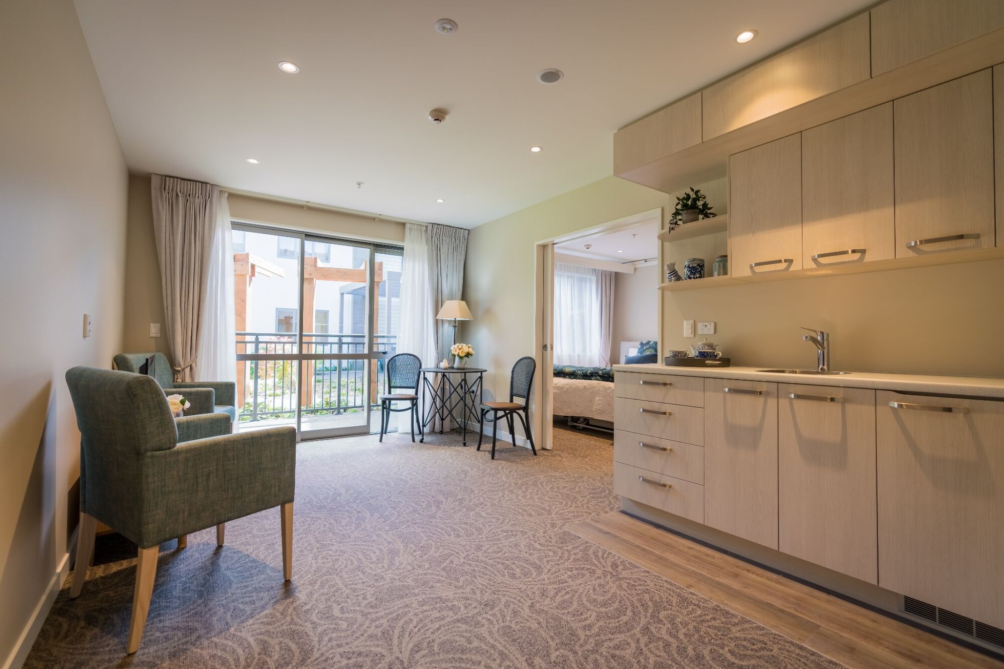 Our Care Suites offer space, flexibility and extra features. Suitable for either Rest Home or Hospital care, you don’t have to move if your needs change between these levels. All Care Suites come complete with a heat pump and full en-suite bathroom, as well as a kitchenette with a fridge and a kettle – perfect for making a cuppa when friends and family come to visit. You own the right to occupy your Care Suite, so you can personalise it with your favourite furniture and treasured pieces. A Health New Zealand – Te Whatu Ora assessment is not required for care that is paid for privately.