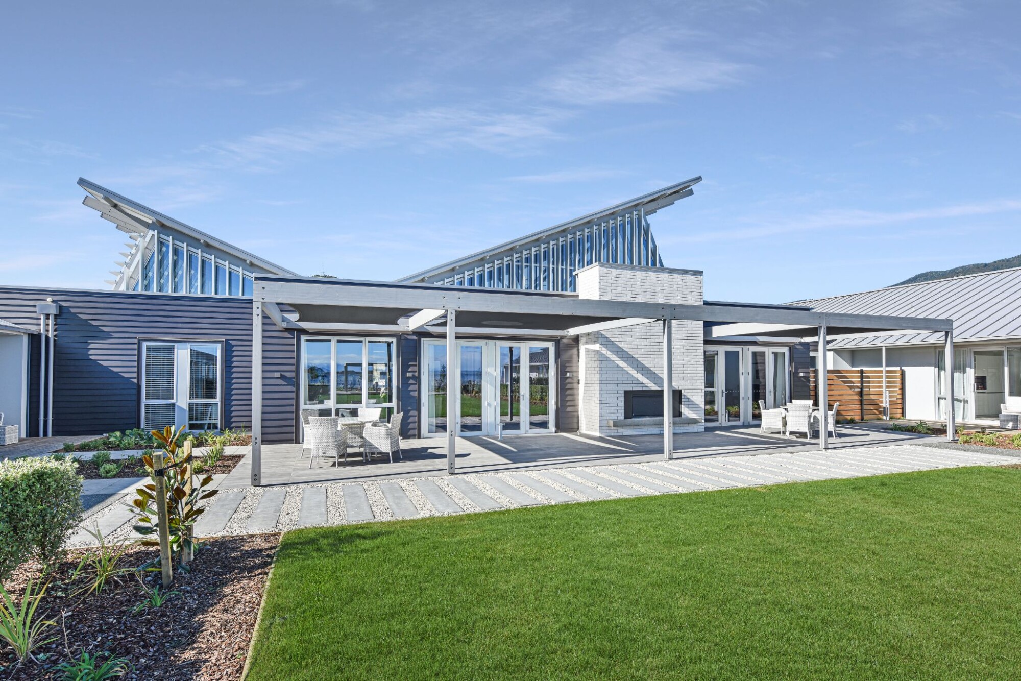 The integrated facility offers all dual (resthome/hospital) rooms for easy transition should their care needs change. Suites are available in 22m2, 30m2 or 40m2 options, all with generous private outdoor decking (up to 13m²). Interior styling features have been designed to maximise the indoor-outdoor flow.