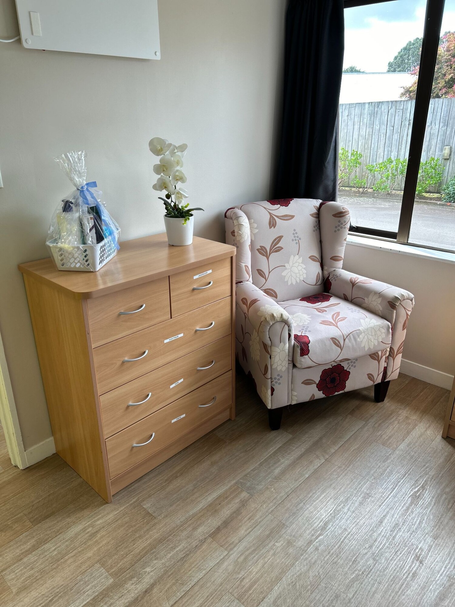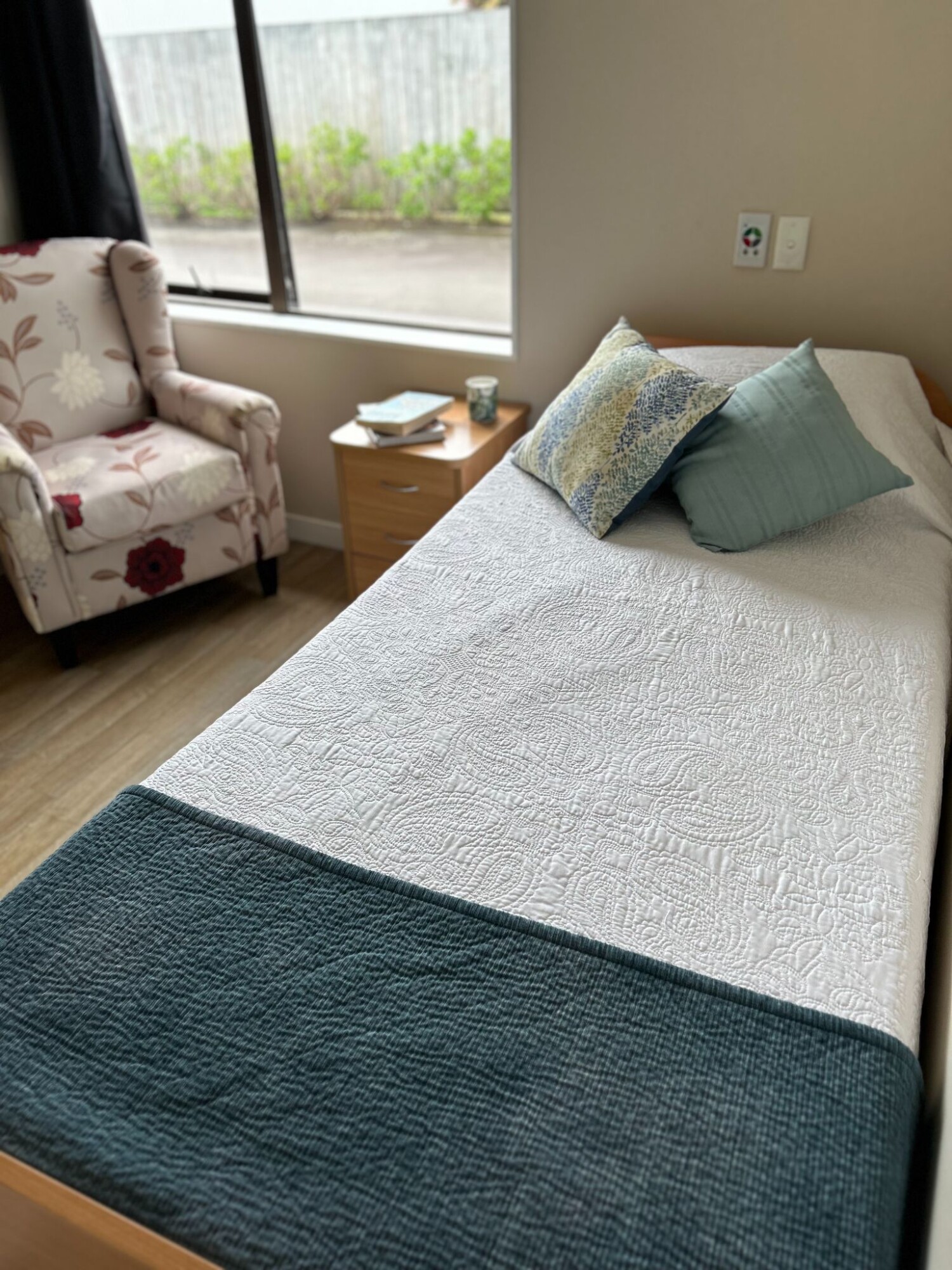 Standard rooms are large enough for a single bed, a chair and a wardrobe or chest of drawers. The cost of a standard room is included in the Care Services Fee set by the Health New Zealand – Te Whatu Ora.