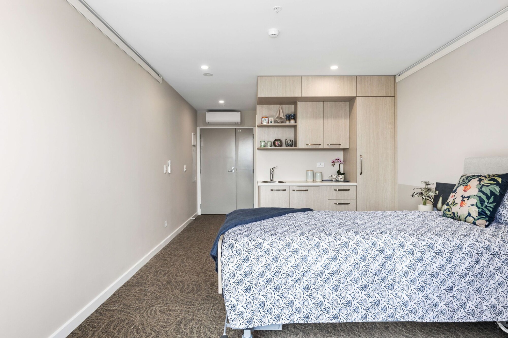 Our Care Suites offer space, flexibility and extra features. Suitable for either Rest Home or Hospital care, you don’t have to move if your needs change between these levels. All Care Suites come complete with a heat pump and full en-suite bathroom, as well as a kitchenette with a fridge and a kettle – perfect for making a cuppa when friends and family come to visit. You own the right to occupy your Care Suite, so you can personalise it with your favourite furniture and treasured pieces. A Health New Zealand – Te Whatu Ora assessment is not required for care that is paid for privately.
