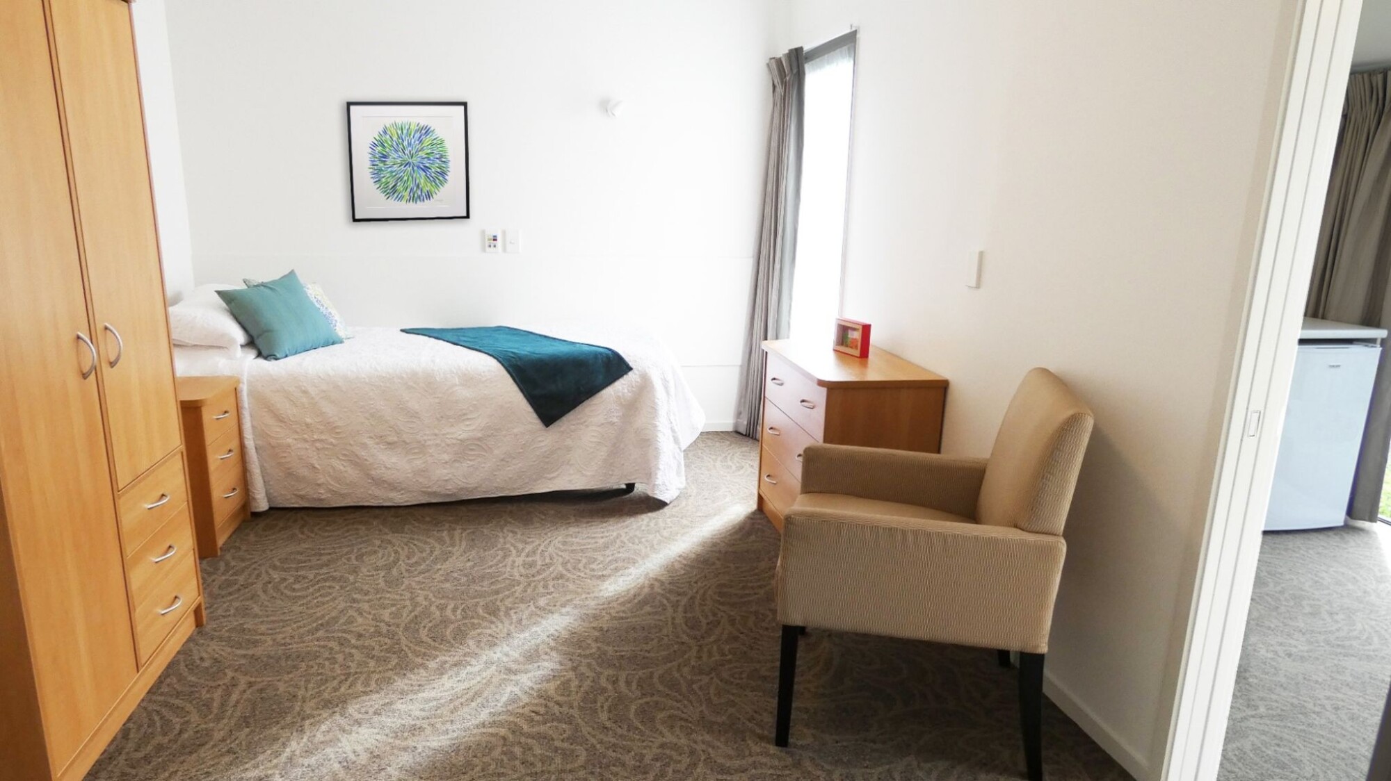 Standard rooms are large enough for a single bed, a chair and a wardrobe or chest of drawers. The cost of a standard room is included in the Care Services Fee set by the Health New Zealand – Te Whatu Ora.