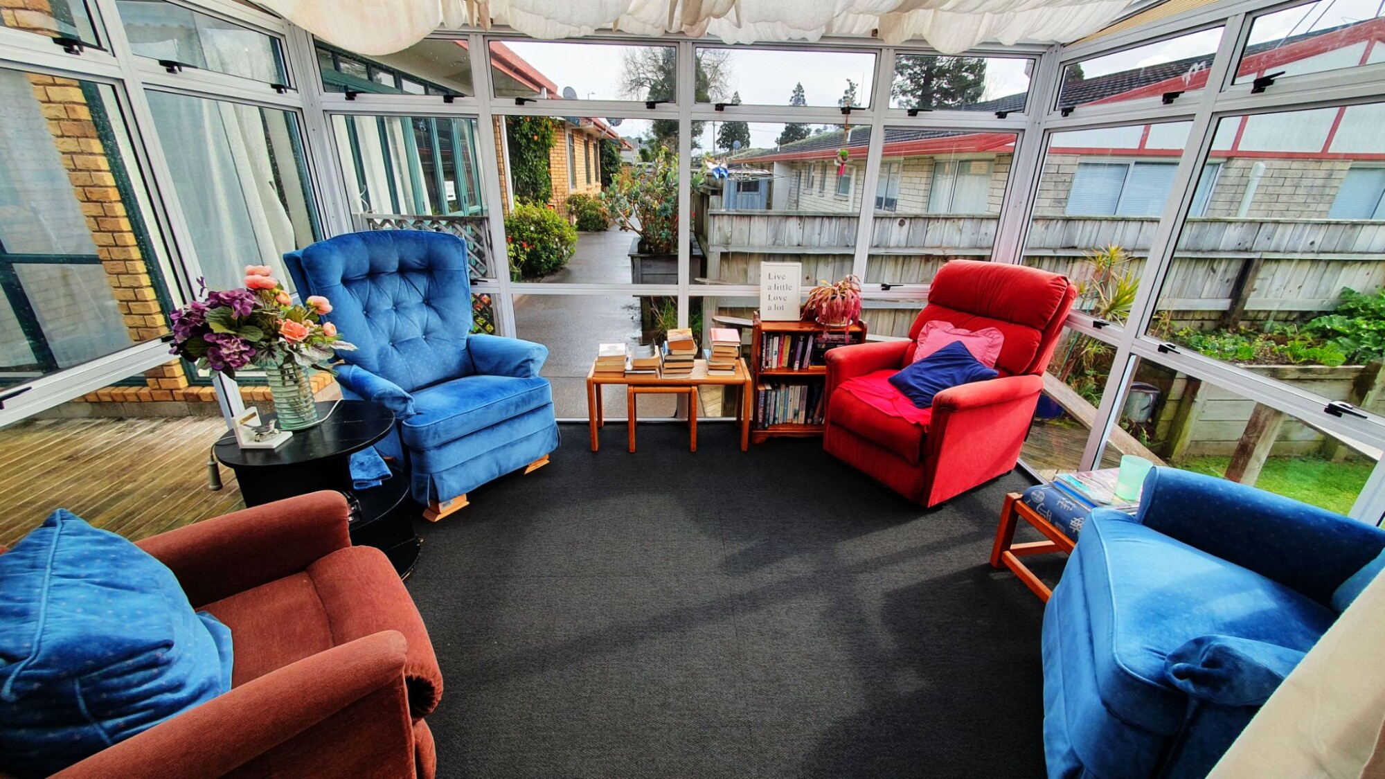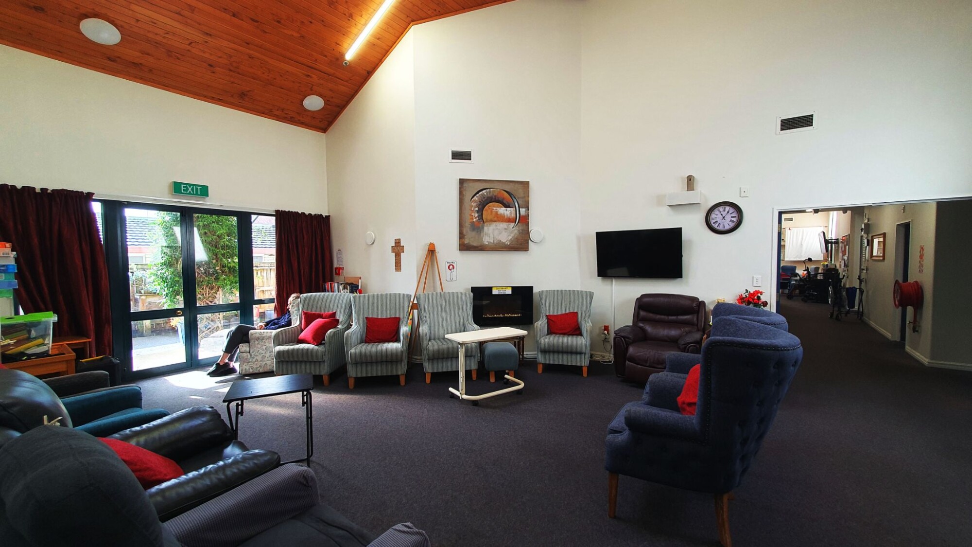 Activity programme includes outings, BINGO, entertainers, church services, exercises, walks, gardening, bowls, board games, playing cards, knitting, jigsaw puzzles, library books, newspaper reading, quizzes, piano, singing, high teas, pastoral care, films and large screen tv.