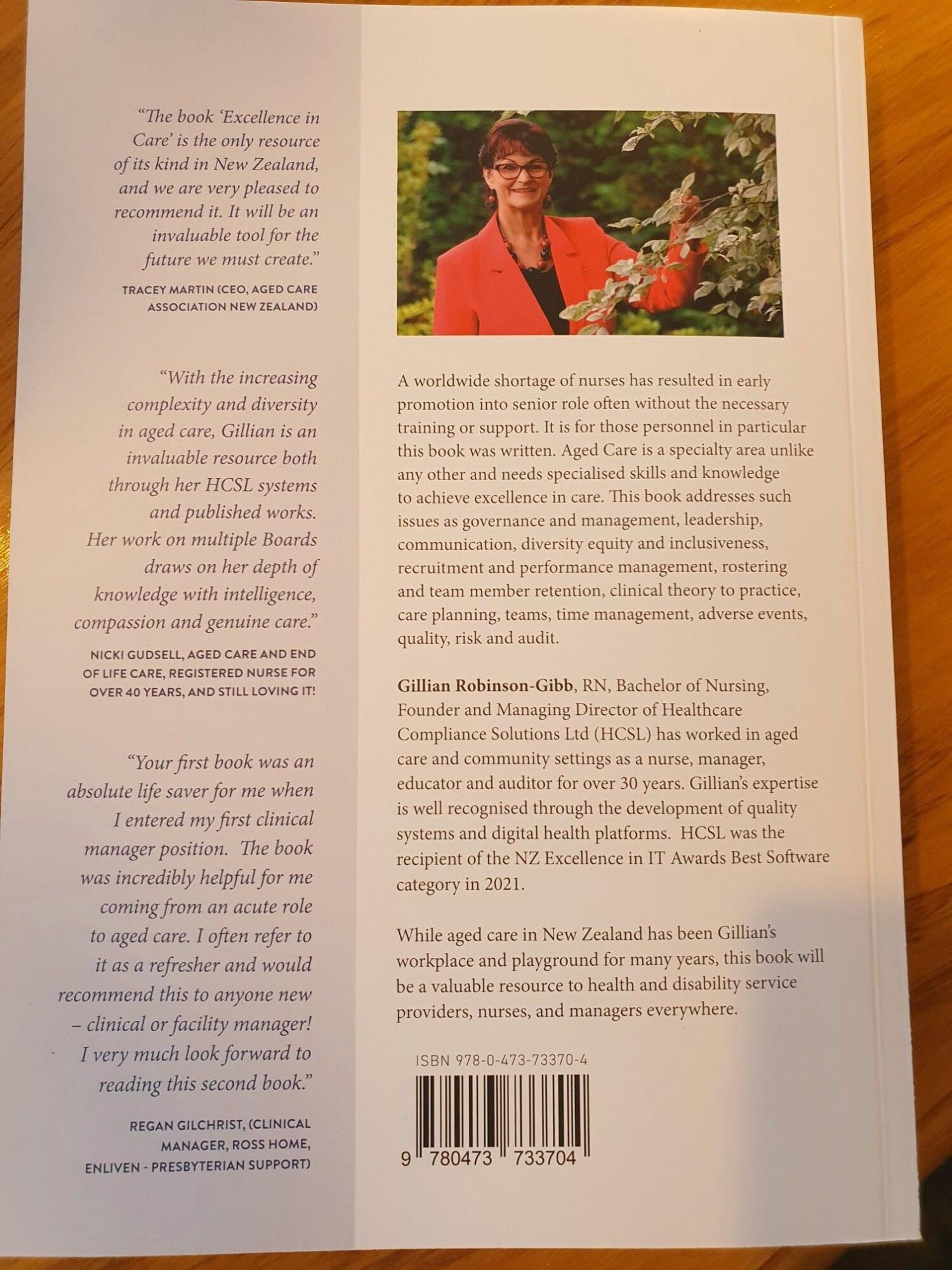 Gillian (Fellow of Australasian College of Health Service Management), is also the author of two books for the Aged Care managers and Nurses. The latest of these in newly published in February 2025 and available through our website for purchase. This book is endorsed by the Aged Care Association NZ and described as a must read for all those working in aged care.