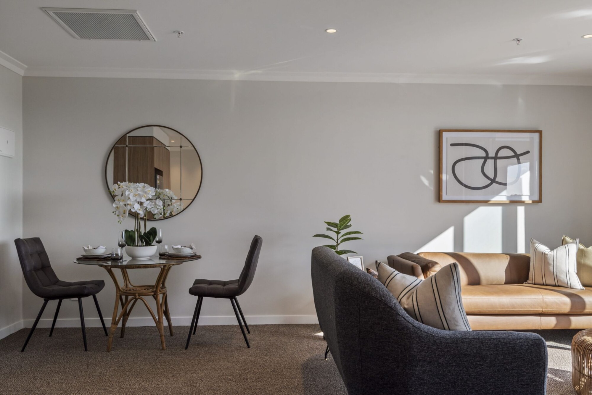 This home is filled with warm afternoon sun and offers a light, spacious open-plan living and dining area with plenty of room to relax or entertain. The generously sized main bedroom features an ensuite bathroom, adding comfort and convenience. Ideally located close to the village centre, dining room, amenities, and lift access, this brand-new unit combines comfortable living with a quiet, private setting.