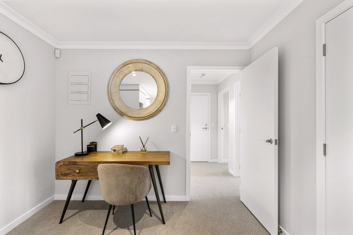 Soak up the afternoon sun and enjoy views of the village gardens from either the lounge or bedrooms. With an open plan living and dining area, two bedrooms, and a large bathroom with separate toilet, there is plenty of room for entertaining friends and family or making space for your hobbies. Both bedrooms are spacious and feature ranch-slider access to your private balcony – perfect for relaxing and taking in the fresh air. This apartment is ideally situated in a quiet location away from the main road and is just a short walk to the lift when you want to get outside.