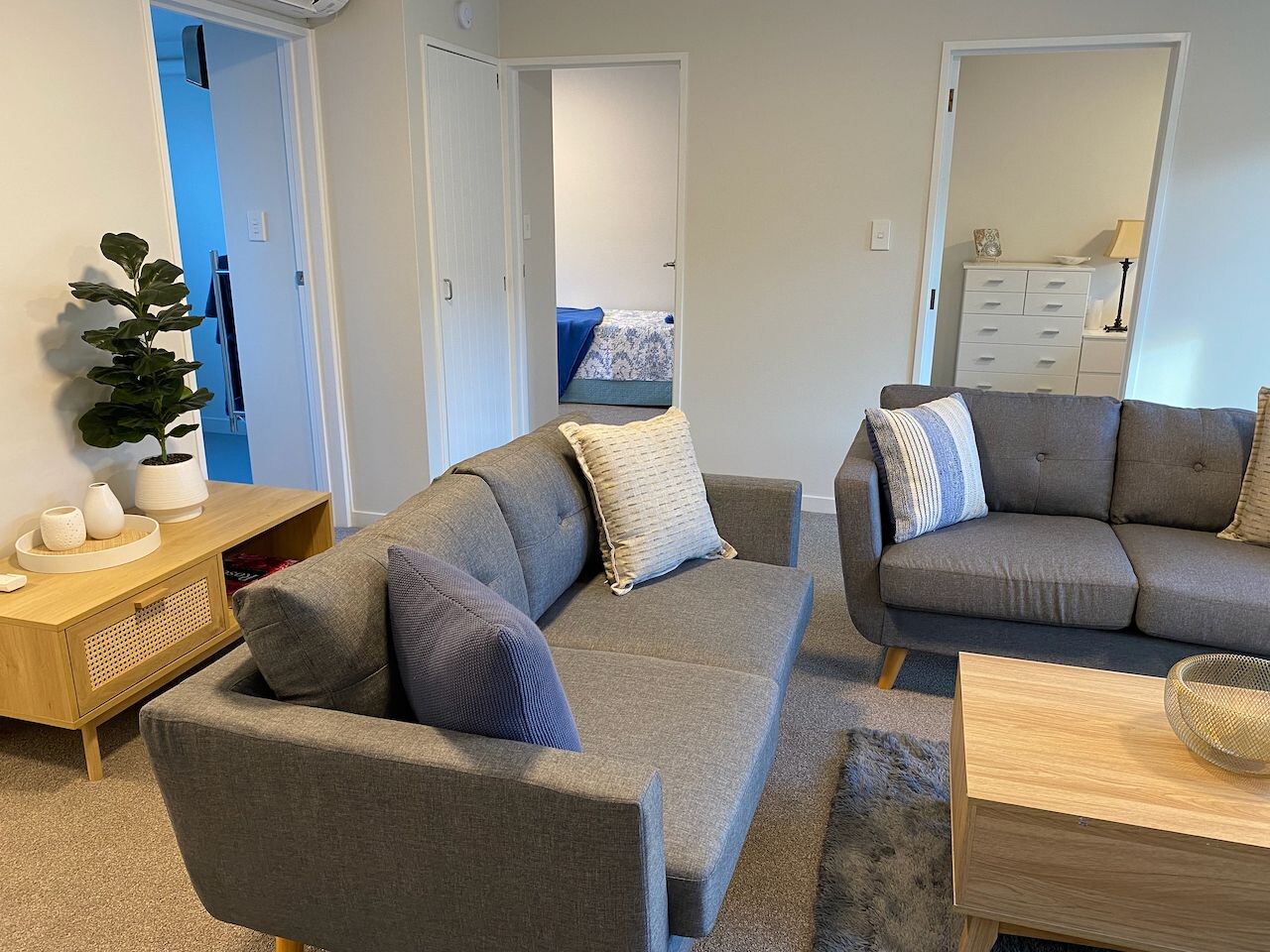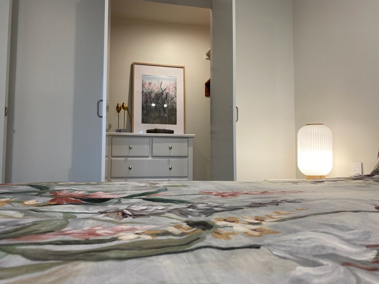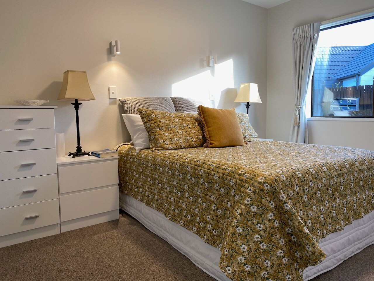 The main bedroom easily accommodates a queen bed and offers ample storage with an extra-large built-in wardrobe. A second guest bedroom off the living area provides flexibility for use as a bedroom, study, or television room.