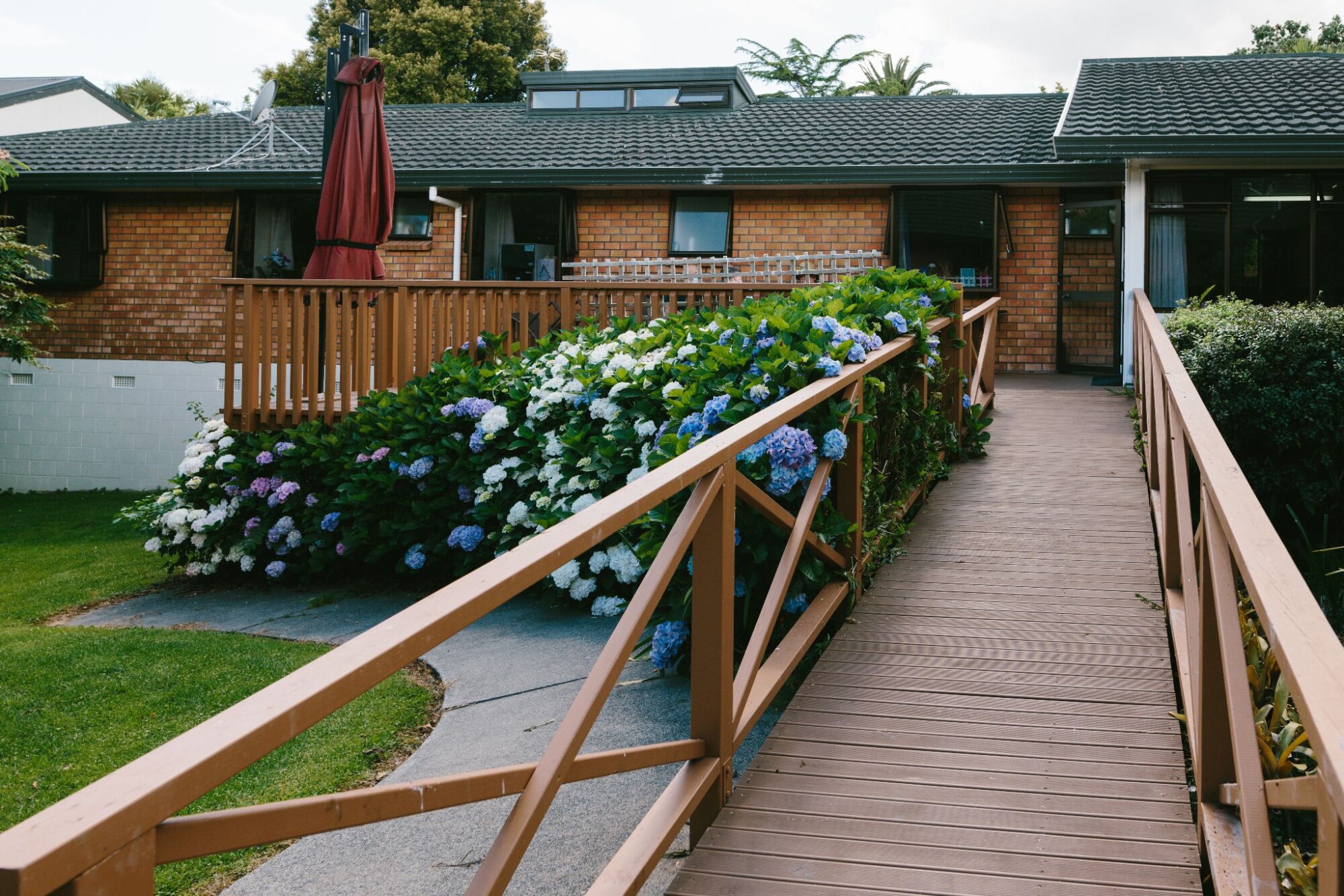 Our rooms are comfortable and warm, with plenty of natural lighting. Each of our wings feature a spacious lounge area where residents can socialise over arts and crafts, indoor bowls and bingo. Exterior doors from the facility lead onto a deck or courtyard, making the outdoor areas easily accessible for our residents to plant seasonal vegetables in the raised outdoor garden beds, or to simply sit and enjoy the diverse flora and fauna. A range of activities and events are available to our residents, and teachers and students from the local Intermediate school regularly drop by to visit and perform musical concerts.