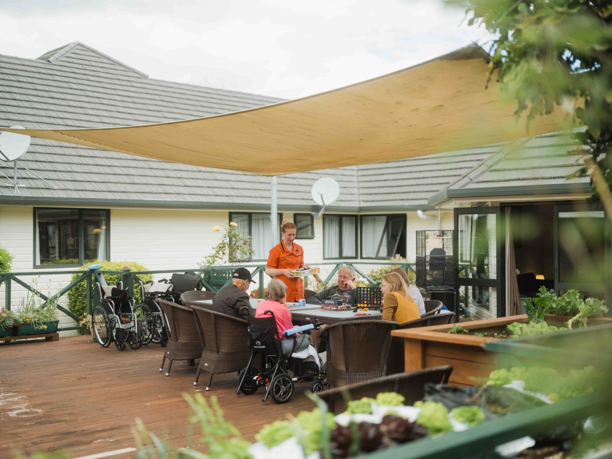 Nestled in the picturesque rural setting of Taupaki, just 20-30 minutes west of Auckland, our care home promotes autonomy and connection. Life at Taupaki Gables is enriched by West Auckland community involvement, with a range of events and activities designed to foster engagement and joy. Our lovely building features a central courtyard with a beautiful gazebo, a BBQ area for gatherings, raised gardens, and covered balconies with an outdoor pool table area—perfect for relaxing with friends and family.