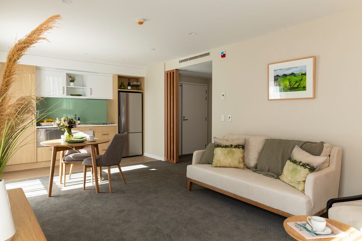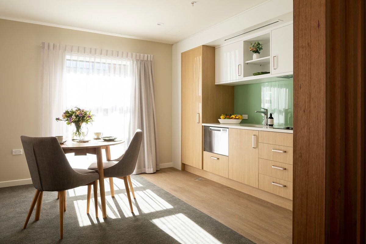 Our new care centre offers long-term accommodation in fully-furnished care suites for people requiring rest home or hospital-level aged care. These are grouped into homely micro-communities call households. Each household has a spacious shared kitchen, communal living areas and access to outdoor spaces.