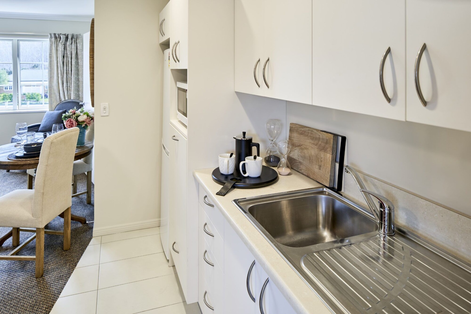 Enjoy your cosy ground floor apartment, perfectly positioned to take in the activity on the bowling green and the serene views of the Western Hills. Recently refreshed with new carpet and fresh paint, it offers a comfortable and modern living space. Located close to the dining room and serviced apartment lounges, this studio keeps you connected to the heart of village life.