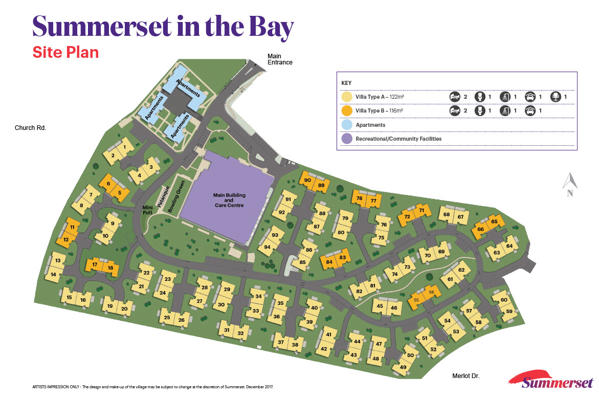 Summerset in the Bay is a welcoming community of energetic residents who are all still very much young-at-heart. The village is situated in an idyllic spot at the northern end of Church Road, near the iconic Mission Estate Winery, and is built on former orchard land known as Citrus Grove.