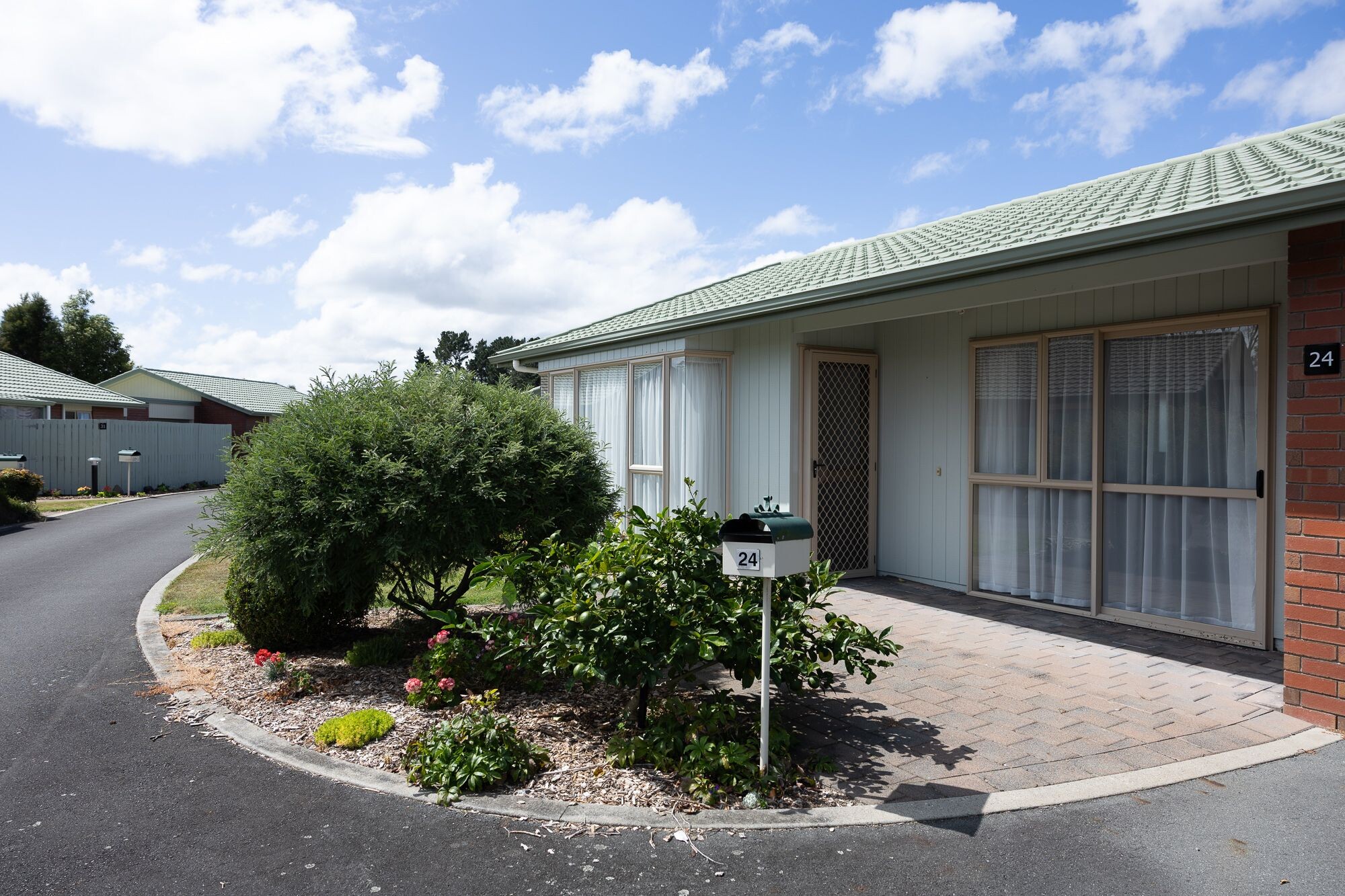 Well spaced units. Developed gully planted with natives, walkways and paths.