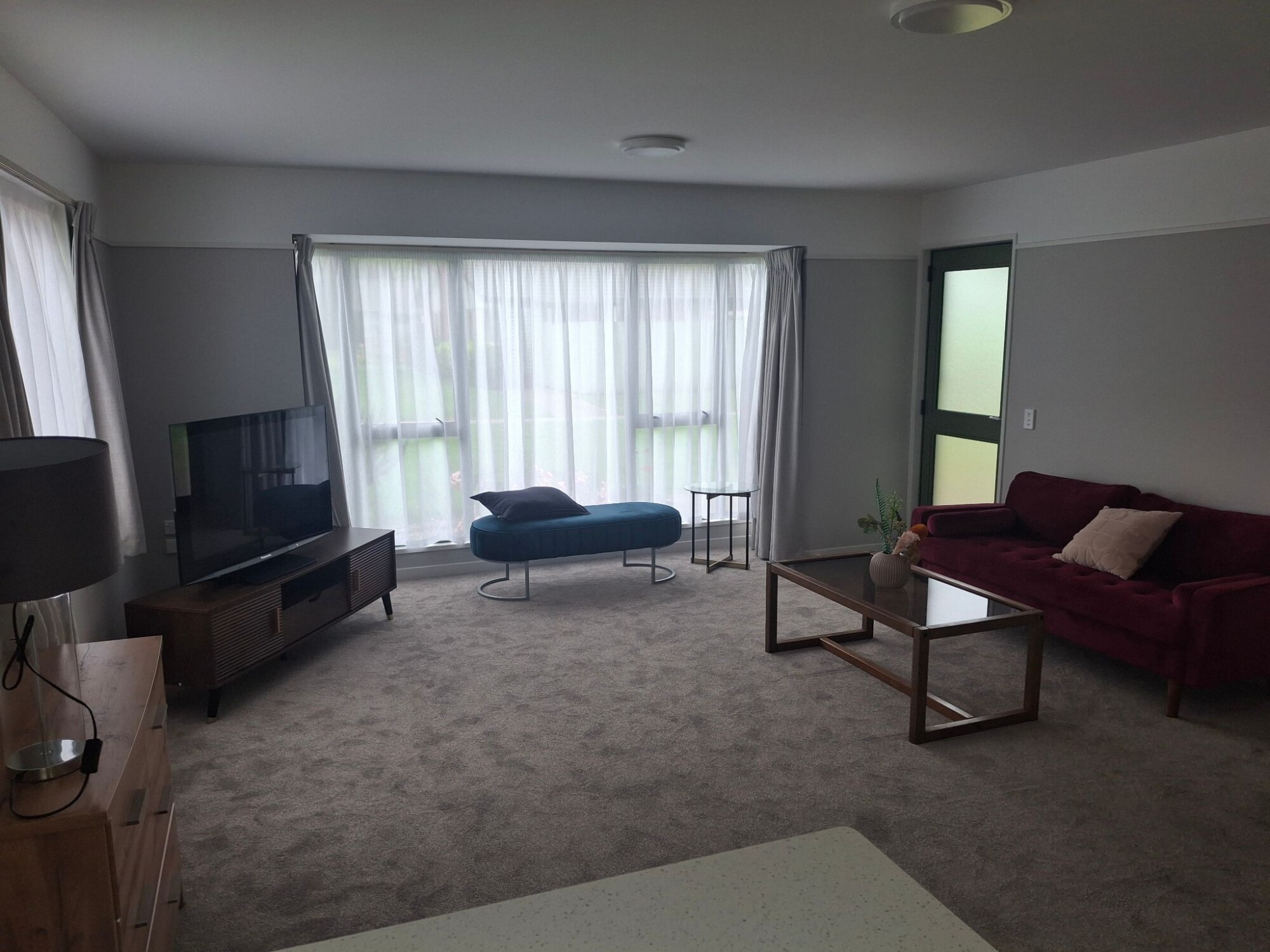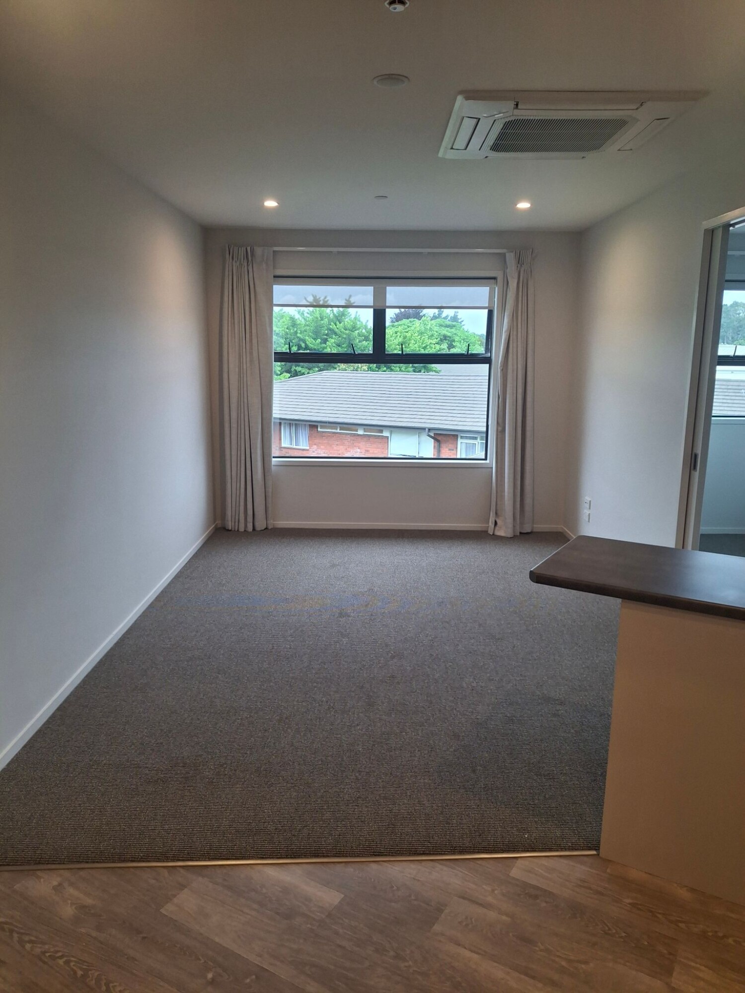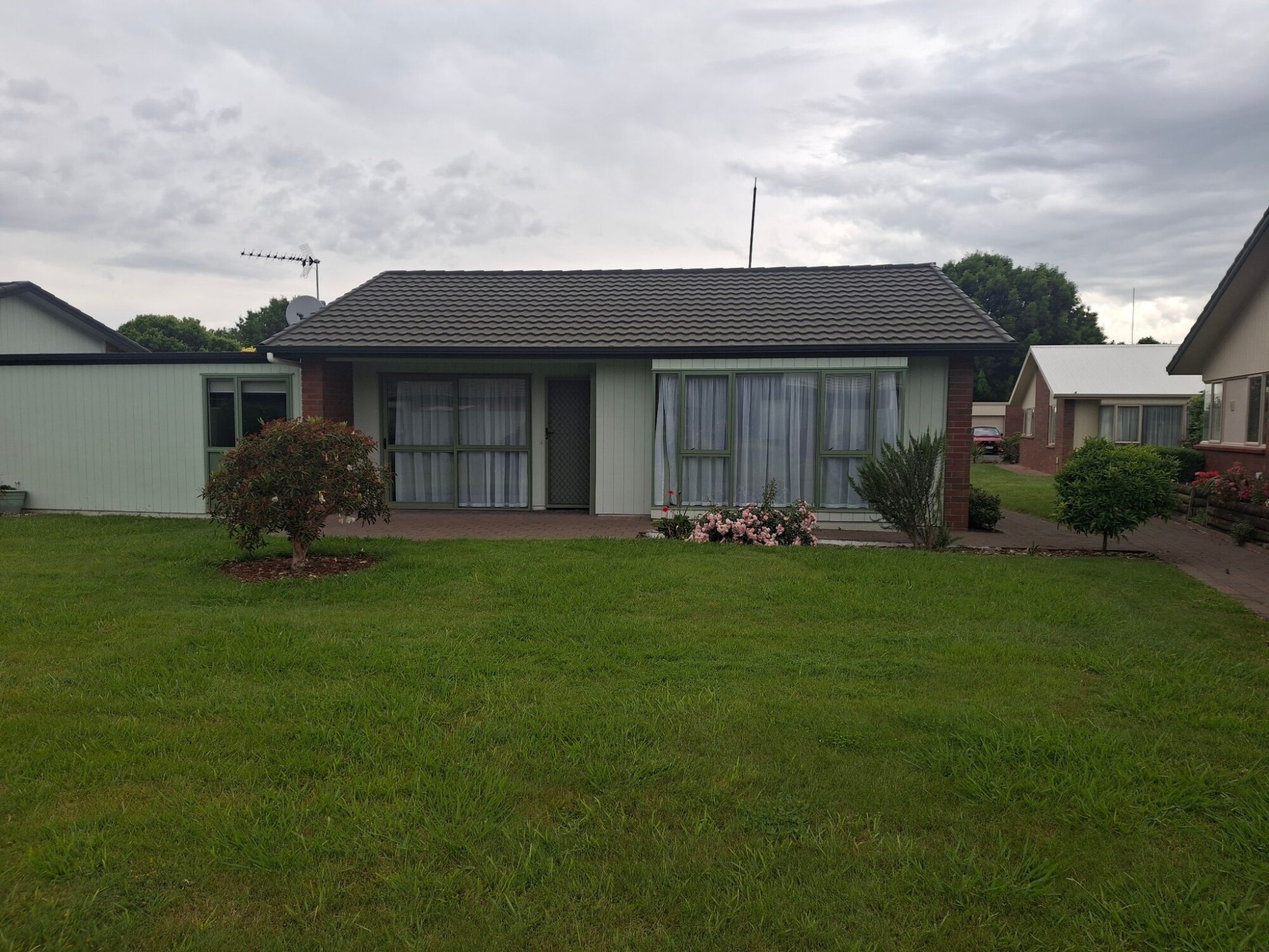 Situated on the first floor above the hospital this apartment looks north over the rest home toward a green tree scape in the distance. The bedroom has windows facing to both the North and the East. Wake to sunshine each morning and at mid day sit in the lounge window soaking up the sun. The apartment is self contained with a full kitchen, bathroom and separate laundry area.