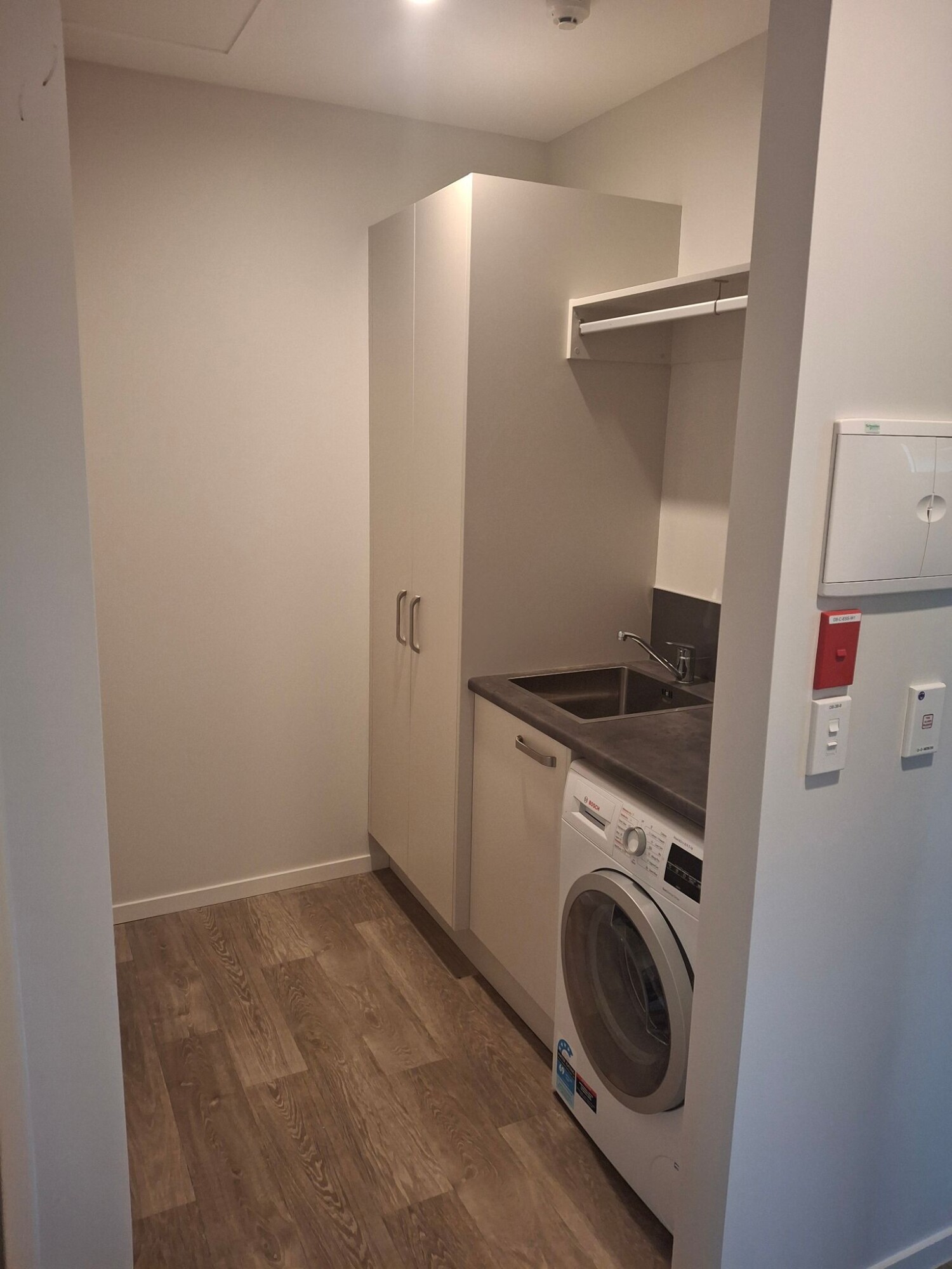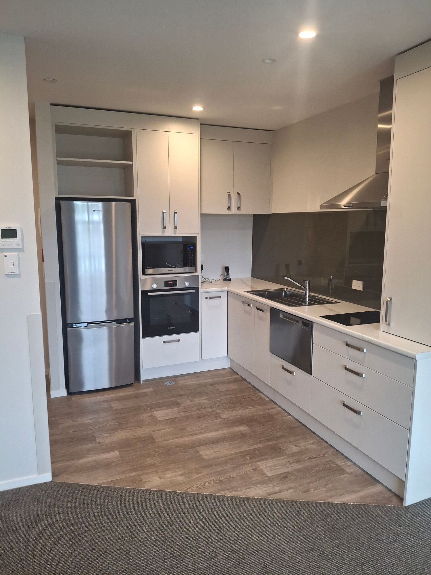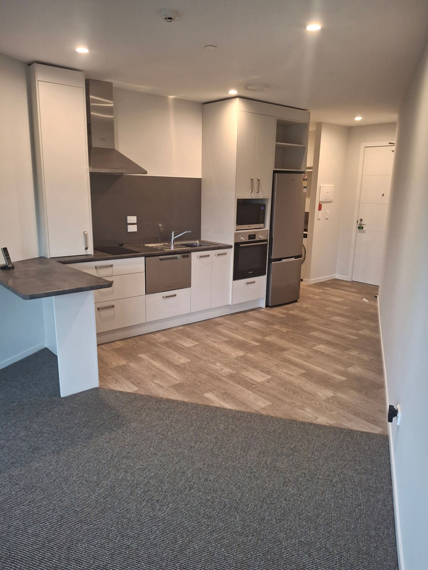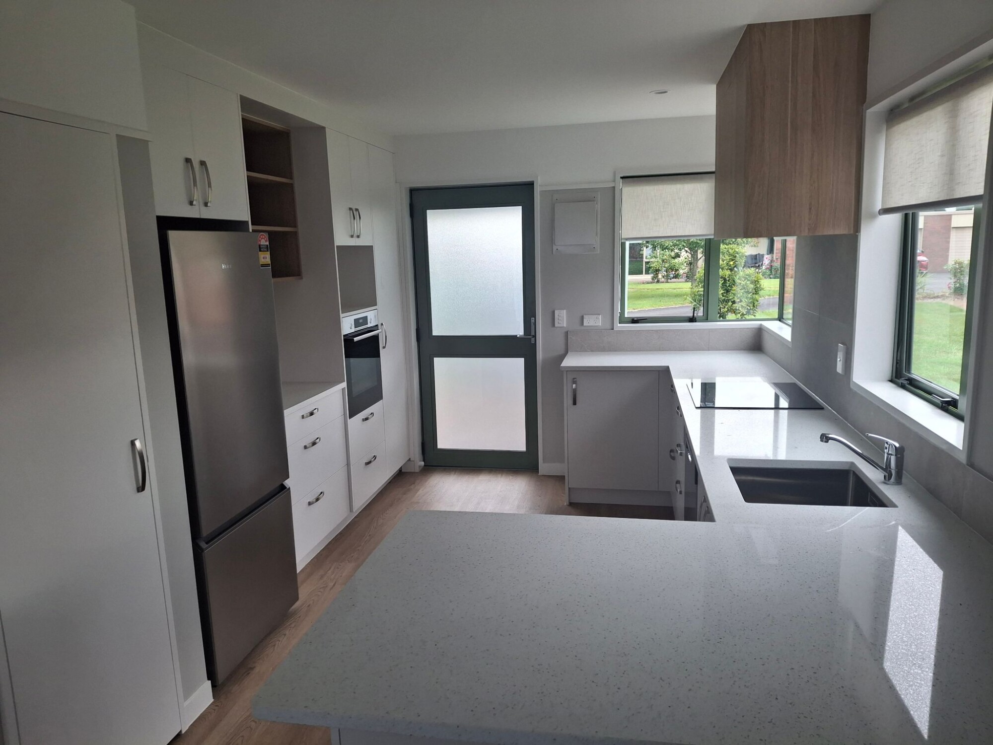 Situated on the first floor above the hospital this apartment looks north over the rest home toward a green tree scape in the distance. The bedroom has windows facing to both the North and the East. Wake to sunshine each morning and at mid day sit in the lounge window soaking up the sun. The apartment is self contained with a full kitchen, bathroom and separate laundry area.