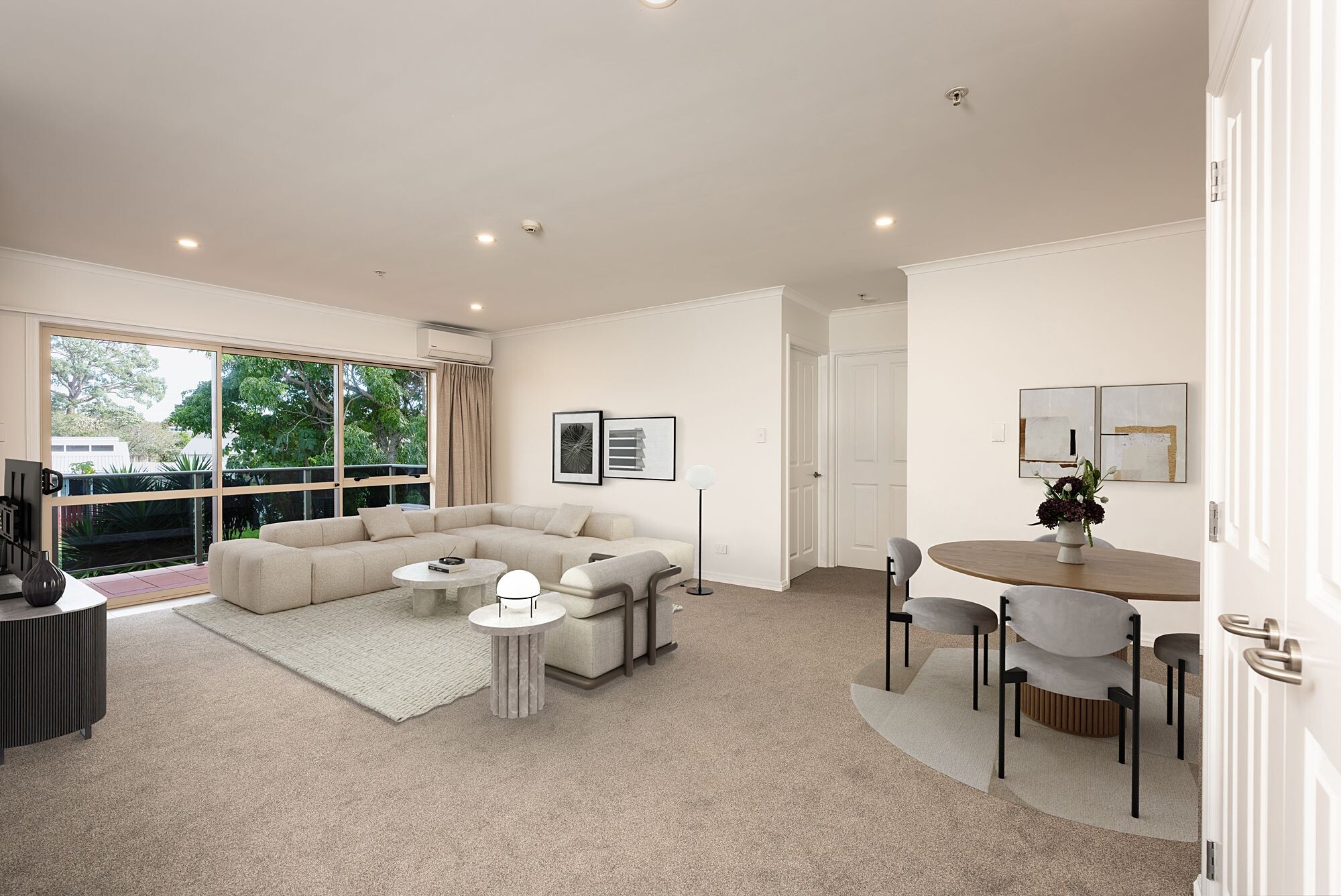 This inviting apartment offers a spacious open-plan lounge and dining area that flows effortlessly onto your balcony – an ideal place to relax, enjoy the sunshine, or share a moment with friends.
