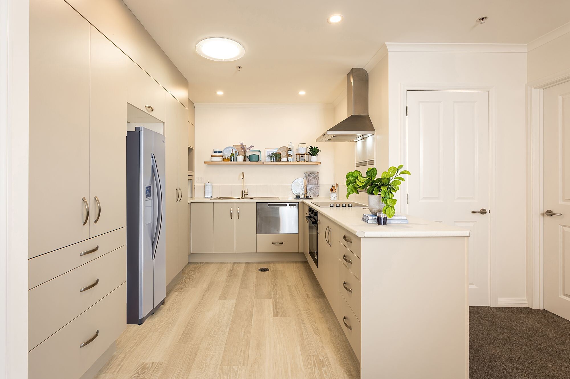 The modern, purpose-built kitchen is both stylish and practical, complete with an electric oven, ceramic cooktop, rangehood, and dish drawer – everything you need for easy everyday living.
