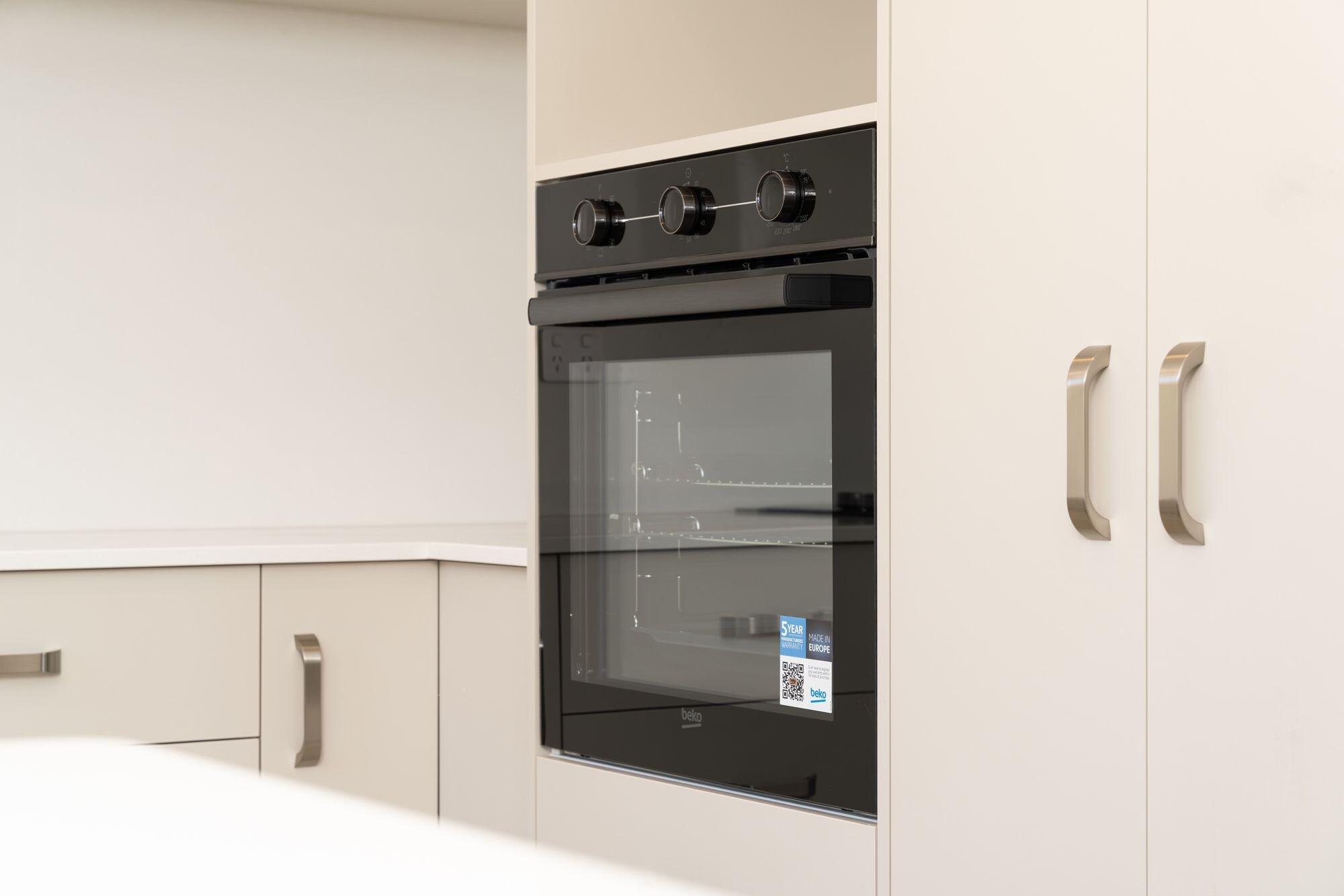 The modern, purpose-built kitchen is thoughtfully designed and well equipped with an electric oven and ceramic cooktop, making everyday cooking both easy and enjoyable.