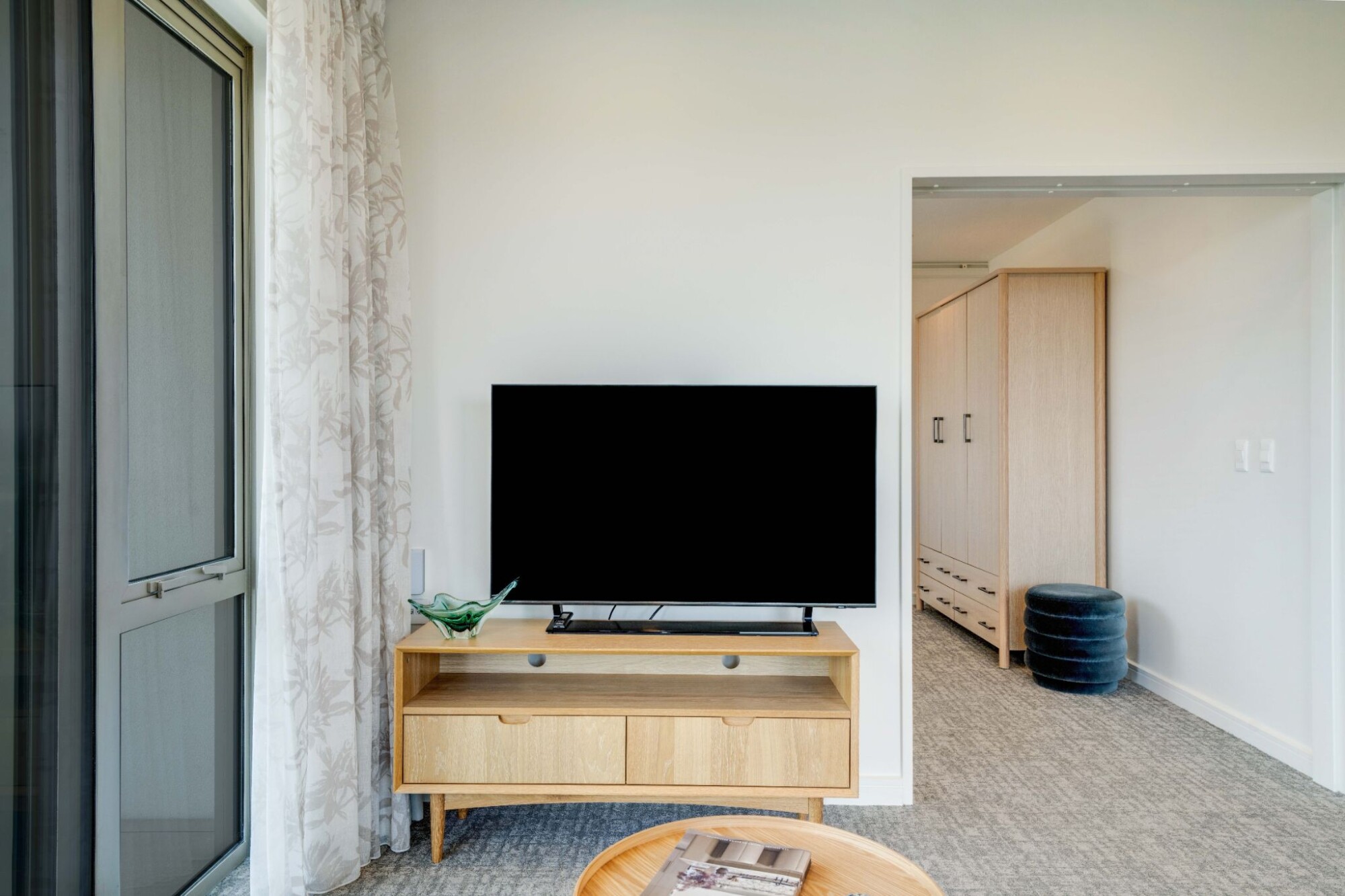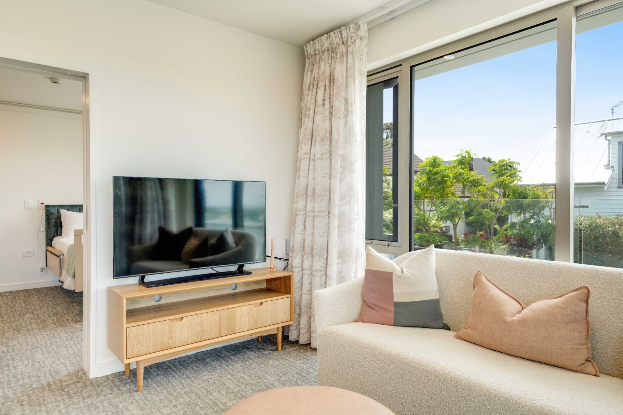 Apartment 459 offers an exceptional place to call home, with breathtaking ocean views stretching across the beaches and all the way to the Auckland CBD. From sunrise colour over the water to twinkling city lights in the evening, this one-bedroom apartment captures some of the most beautiful outlooks The Helier has to offer.