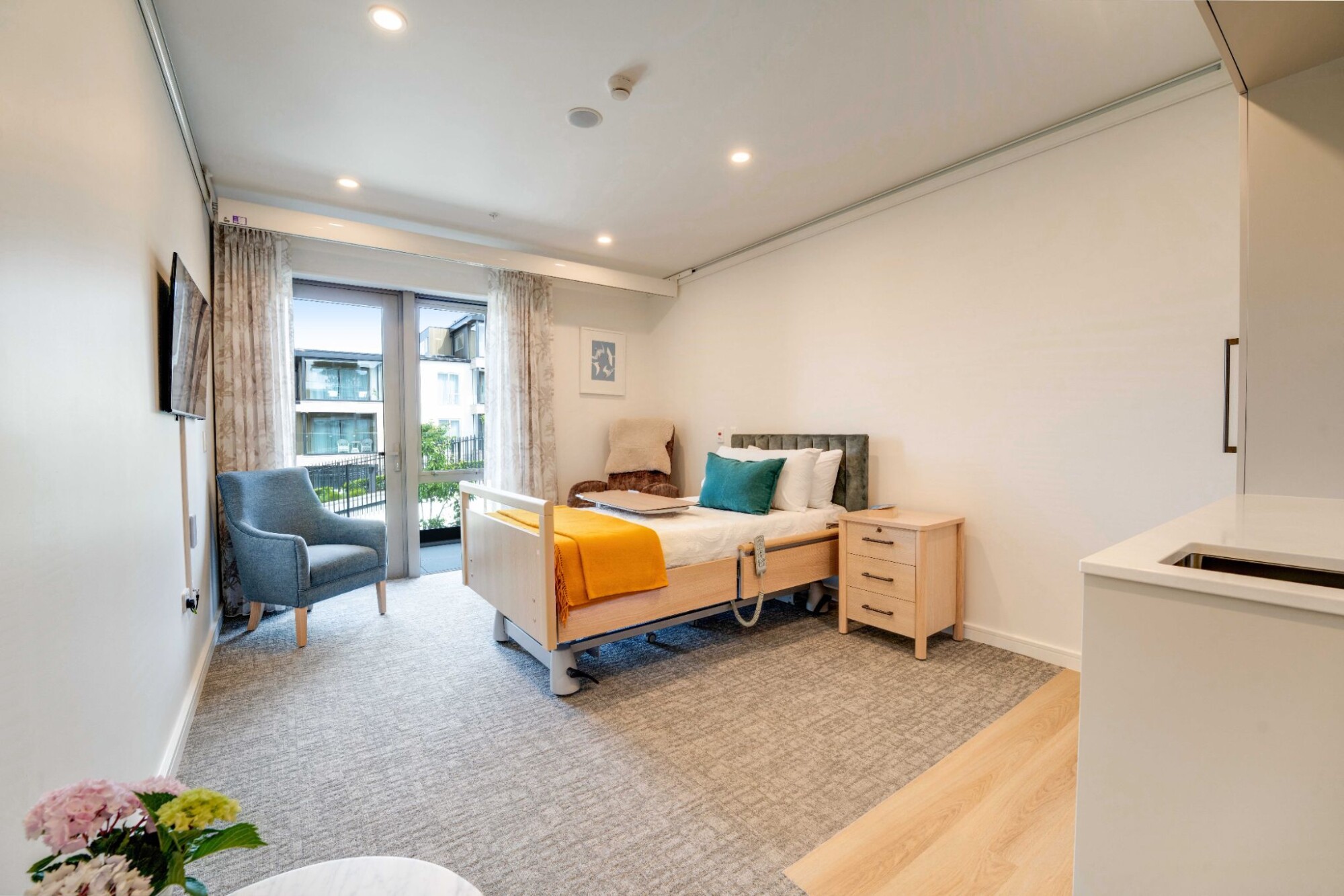 During your stay, you will be supported by an experienced clinical team delivering 24/7 nursing care, with nurse practitioners onsite regularly. You’ll have a spacious studio Care Residence, complete with a generous ensuite bathroom and kitchenette, with most residences having their own balcony or patio. All of your meals are taken care of, with nutritionally balanced chef-prepared cuisine that doesn’t compromise on flavour. You’ll have access to The Helier’s exceptional amenities too, including our stunning care lounges, private dining area and patio and hair salon – with accompanied access to the day spa and boutique cinema.
