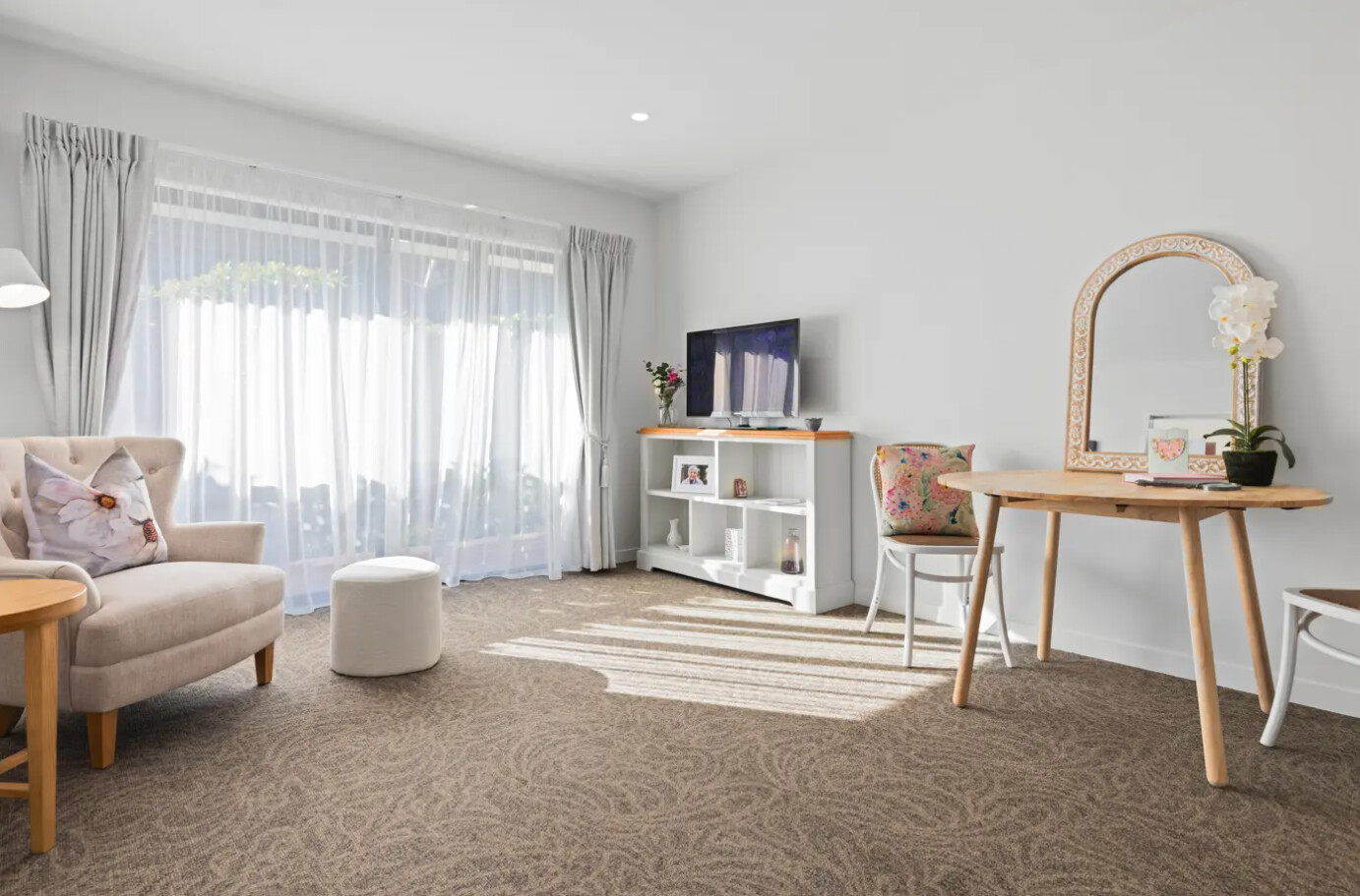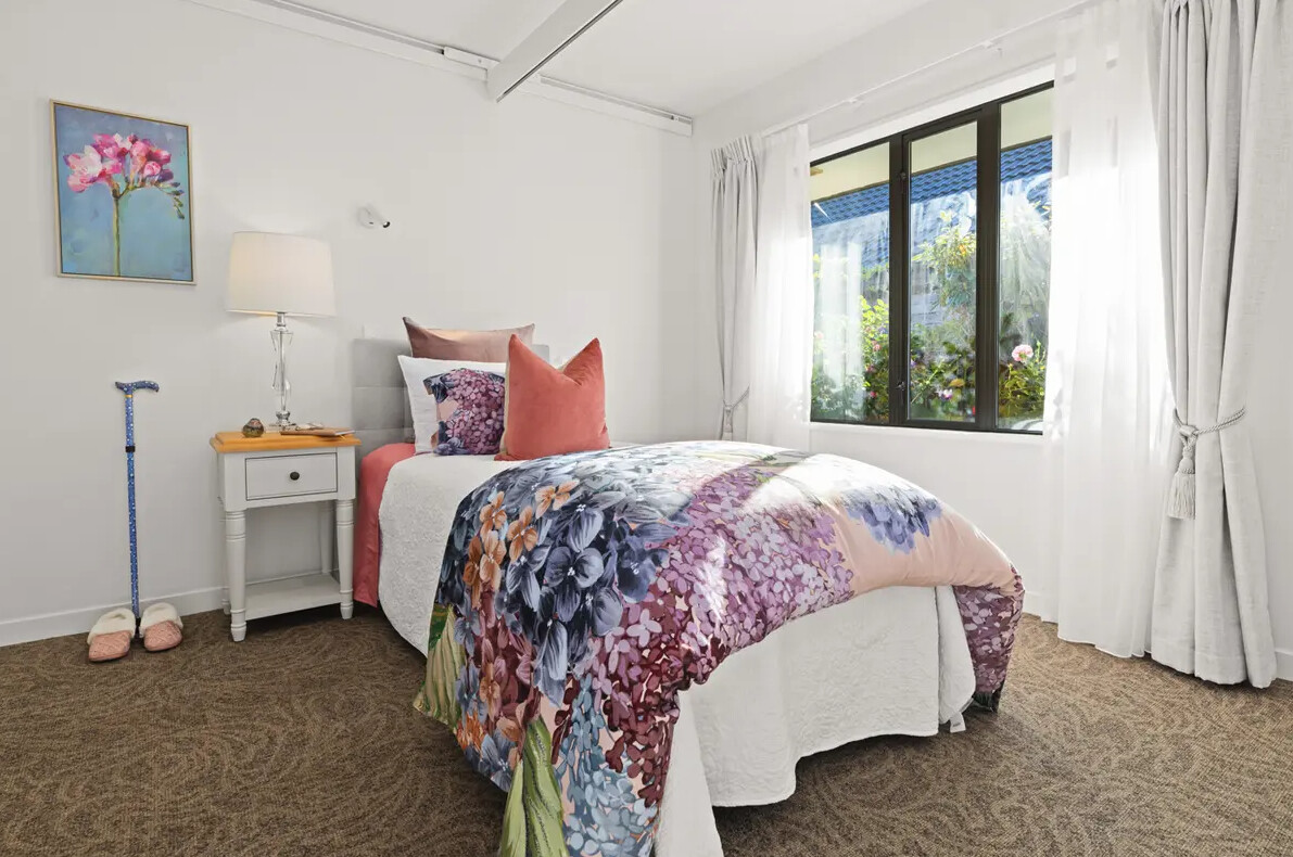 Standard rooms are large enough for a single bed, a chair and a wardrobe or chest of drawers. The cost of a standard room is included in the Care Services Fee set by the Health New Zealand – Te Whatu Ora.