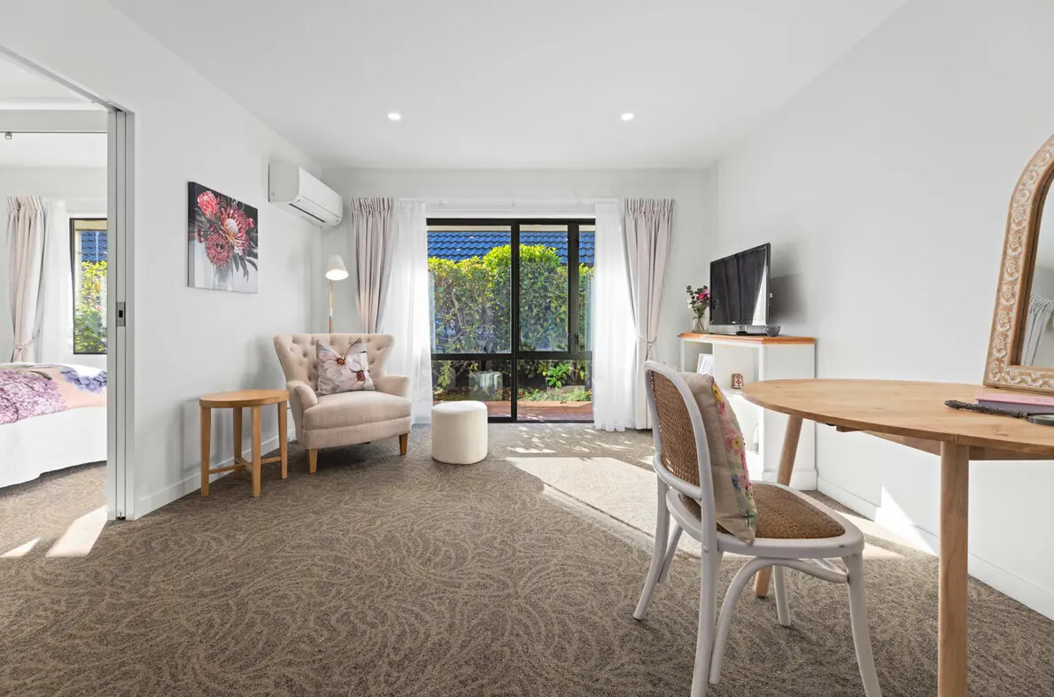 Our Care Suites offer space, flexibility and extra features. Suitable for either Rest Home or Hospital care, you don’t have to move if your needs change between these levels. All Care Suites come complete with a heat pump and full en-suite bathroom, as well as a kitchenette with a fridge and a kettle – perfect for making a cuppa when friends and family come to visit. You own the right to occupy your Care Suite, so you can personalise it with your favourite furniture and treasured pieces. A Health New Zealand – Te Whatu Ora assessment is not required for care that is paid for privately.