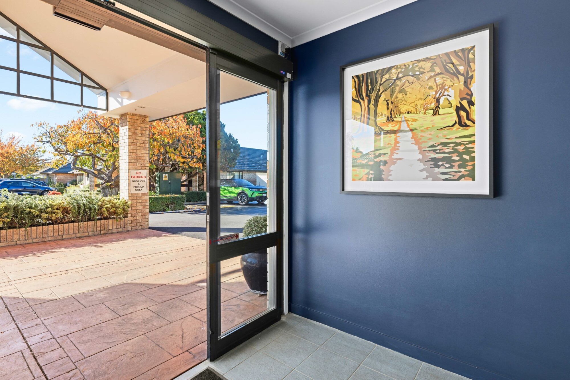 nearby community facilities before or after visiting. The surrounding neighbourhood is calm and residential, with flat, walkable streets and easy access to everyday amenities.