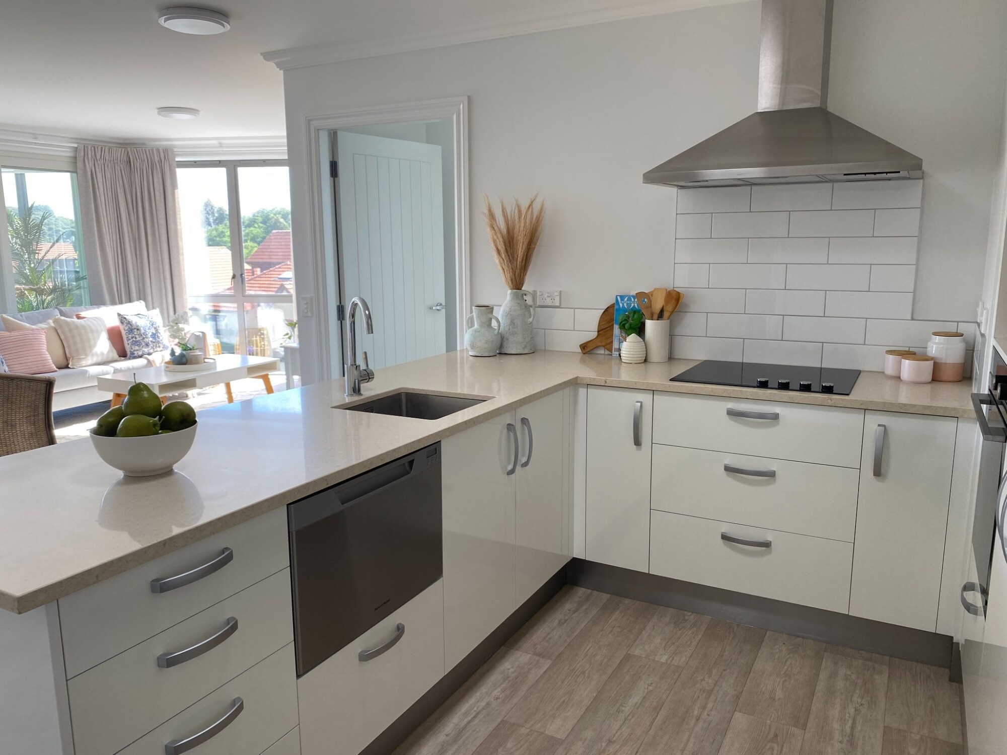 Inside, you’ll find three generous bedrooms, two beautifully appointed bathrooms, and a bright, open plan living area designed for easy, contemporary living. The kitchen gleams with brand-new appliances, stone bench tops, and a sleek dishwasher, while solar tubes fill the home with natural light.